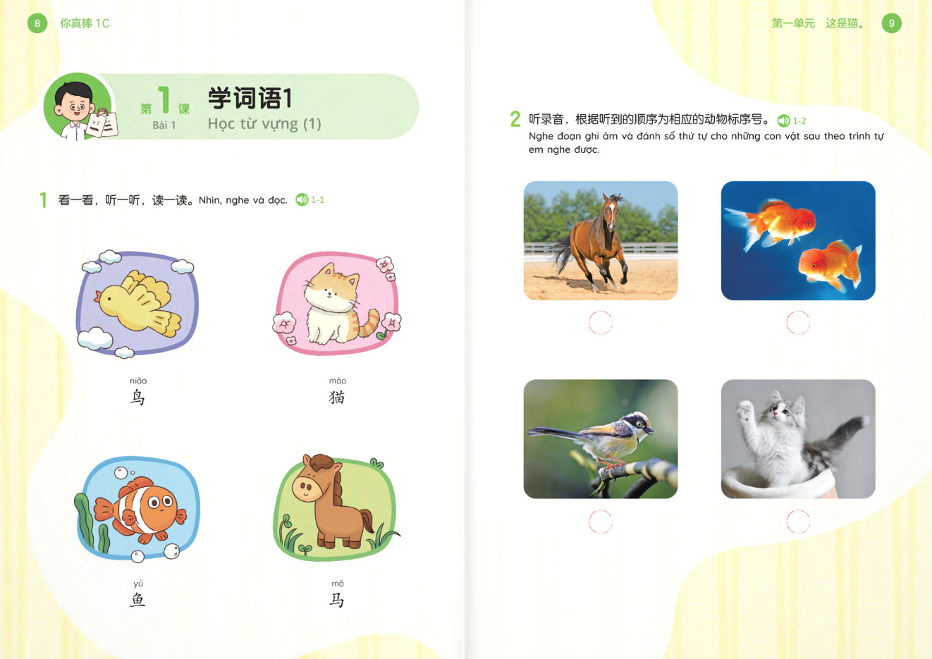 Với bộ sách này, học sinh có thể dễ dàng ghi nhớ từ vựng, nắm được cách viết chữ Hán, biết vận dụng kiến thức đã học khi giao tiếp trong thực tế và mở mang tầm nhìn về thế giới xung quanh.