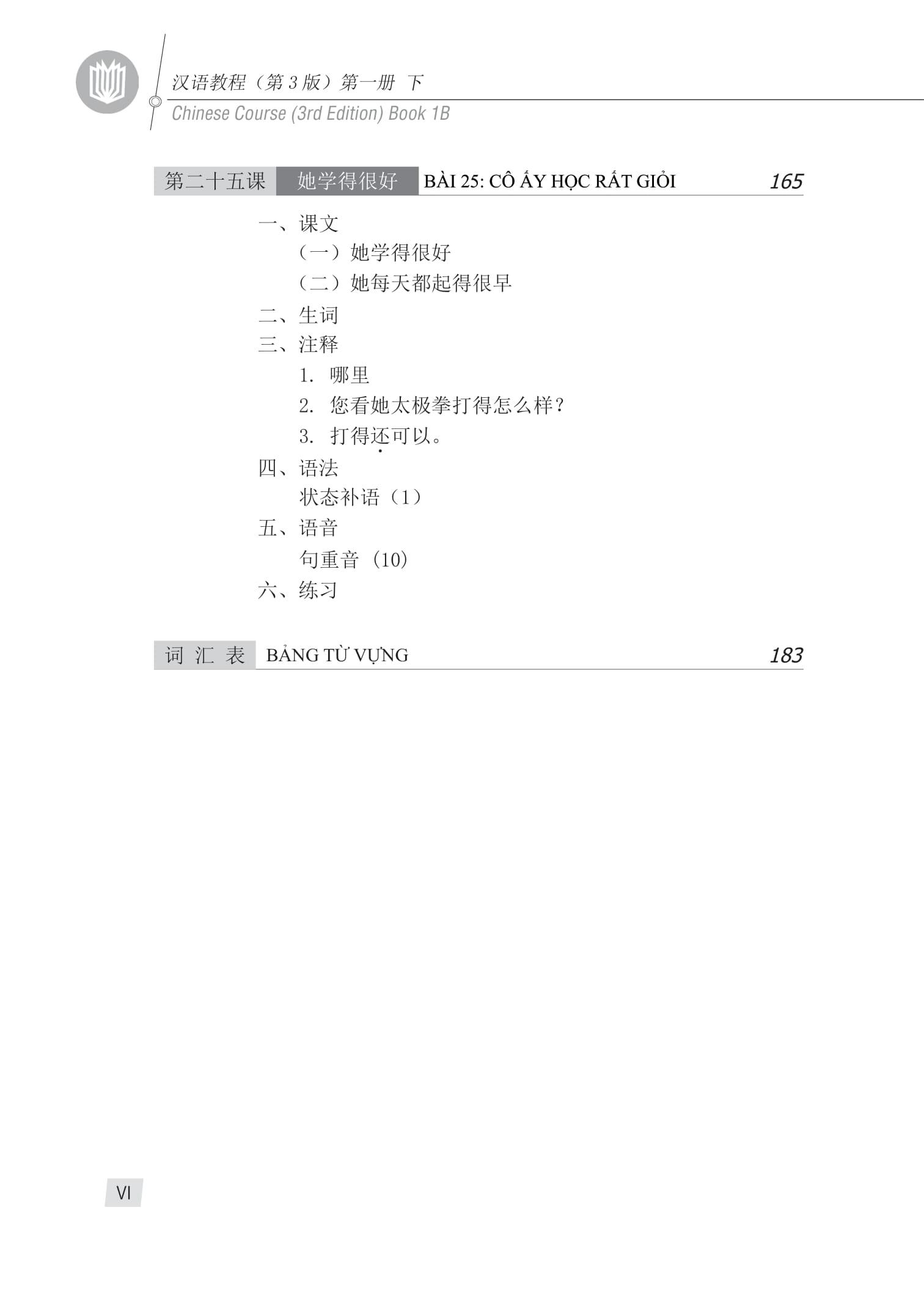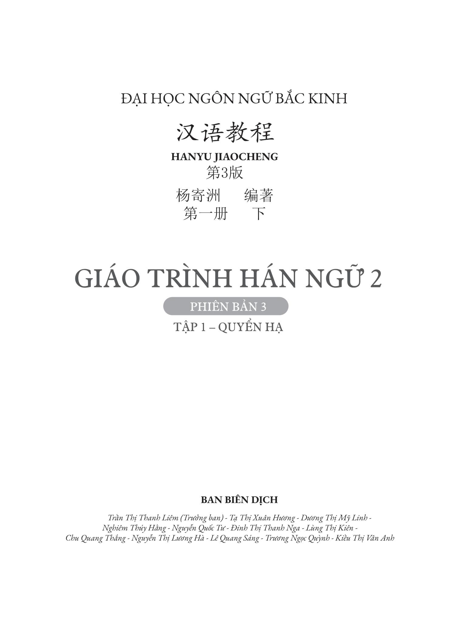Giáo Trình Hán Ngữ 2 - Tập 1 - Quyển Hạ Các bài học trong “Giáo trình Hán ngữ 2 Tập 1 Quyển hạ phiên bản 3″ được thiết kế như sau: 1. Bài đọc, 2. Từ mới, 3. Chú thích, 4. Ngữ âm, Ngữ pháp, 5...