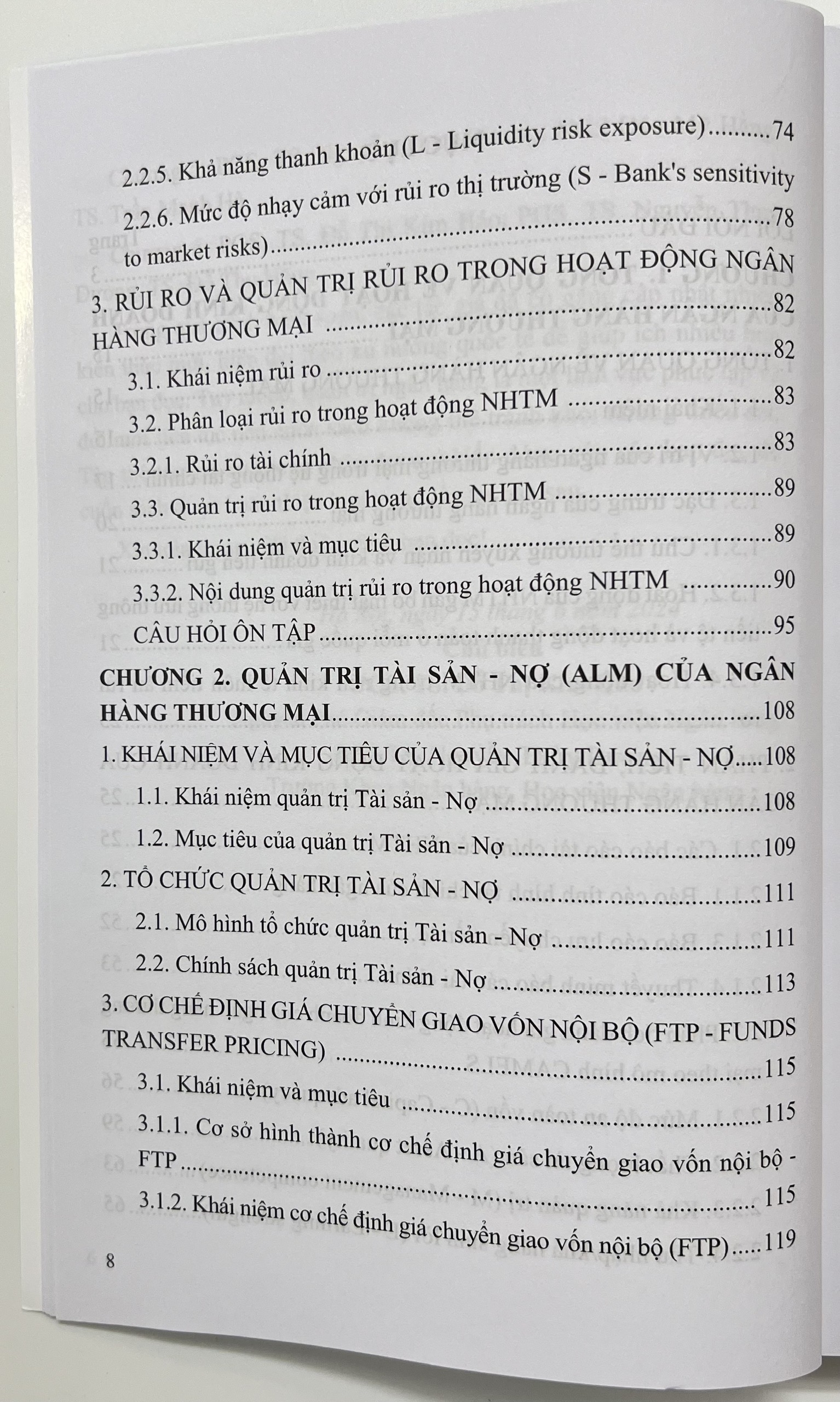 Chương 2: Quản trị Tài sản - Nợ (ALM) của ngân hàng thương mại Chương này giới thiệu nội dung cơ chế định giá vốn nội bộ, và các nội dung quản trị Tài sản - Nợ như quản lý rủi ro lãi suất, quản lý rủi ro thanh khoản và quản lý cấu trúc vốn.