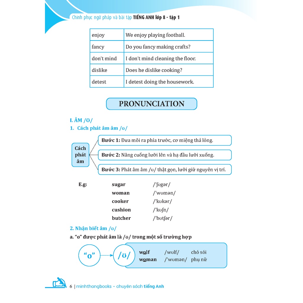 GLOBAL SUCCESS - Chinh Phục Ngữ Pháp Và Bài Tập Tiếng Anh lớp 8 tập 1 Bộ sách “Chinh phục ngữ pháp và bài tập tiếng Anh” từ lớp 6 đến lớp 12 được biên soạn theo khung chương trình tiếng Anh đang được giảng dạy trong các trường trung học cơ sở và trung học phổ thông trên toàn quốc. Bộ sách được biên soạn rất công phu, kỹ lưỡng và tâm huyết bởi các giáo viên, giảng viên có nhiều kinh nghiệm giảng dạy ở các trường chuyên Anh. Với mỗi bài học, chúng tôi đều biên soạn theo ba phần kiến thức cơ bản:Phát âm, ngữ pháp bài tập ứng dụng.- Phần Phát âm giới thiệu cách phát âm và một số quy tắc phát âm thường dùng.- Phần Ngữ pháp của mỗi bài được trình bày một cách chi tiết, khoa học rõ ràng, dễ hiểu.- Phần Bài tập: Các bài tập được biên soạn theo từng Unit có nội dung tương ứng với từng đơn vị bài học trong sách giáo khoa. Sau phần bài tập của từng Unit có một bài kiểm tra (Test for unit) để đánh giá kết quả học tập của học sinh. Chúng tôi biên soạn bộ sách này với hy vọng giúp các em học sinh tự học một cách dễ dàng, củng cố và nâng cao kiến thức, đồng thời giúp cho thầy cô giáo và các phụ huynh có thêm tài liệu tham khảo trong việc giảng dạy và kèm cặp các em học tốt môn Tiếng Anh.