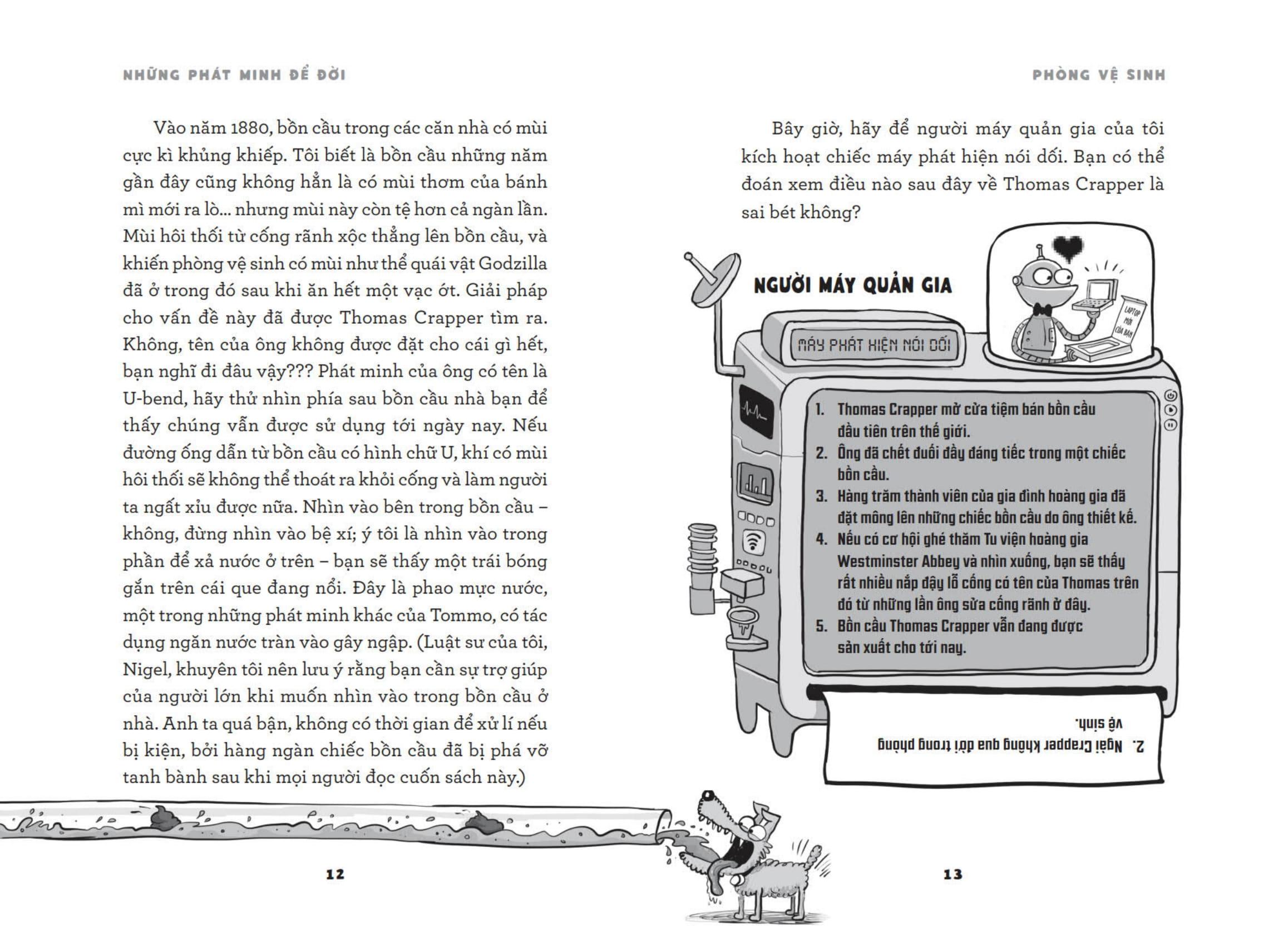 Mua tại TiktokKay’s Incredible Inventions - Những Phát Minh Để Đời Bạn đã bao giờ tự hỏi mọi thứ xung quanh m.ình đến từ đâu không? Ai là người đã nghĩ ra mấy thứ siêu việt như trò chơi điện tử, hoặc… ai là thiên tài đã “phát minh” ra trường học (phiền phức muốn xỉu)? Những Phát Minh Để Đời mang đến câu chuyện lịch sử các phát minh của loài người, ví dụ như: Tại sao người Hy Lạp cổ đại lại lau mông bằng… đĩa ăn? Chuyện “giải quyết nỗi buồn” của nữ hoàng dẫn đến… chiếc bồn cầu đầu tiên như thế nào? Làm sao một chú chó lại vô tình tạo ra… khóa dán velcro? Nào, hãy cùng khám phá 48.762.851.208 sự thật kì quặc (ước lượng thôi nhá!) về phát minh, từ NGỚ NGẨN đến KINH TỞM và thậm chí là NGUY HIỂM RỢN TÓC GÁY trong cuốn sách mới nhất của tác giả Adam Kay nhé!