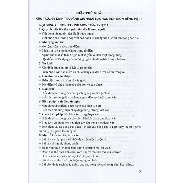Phần 1: Cấu trúc Đề kiểm tra đánh giá năng lực học sinh môn Tiếng Việt 5.