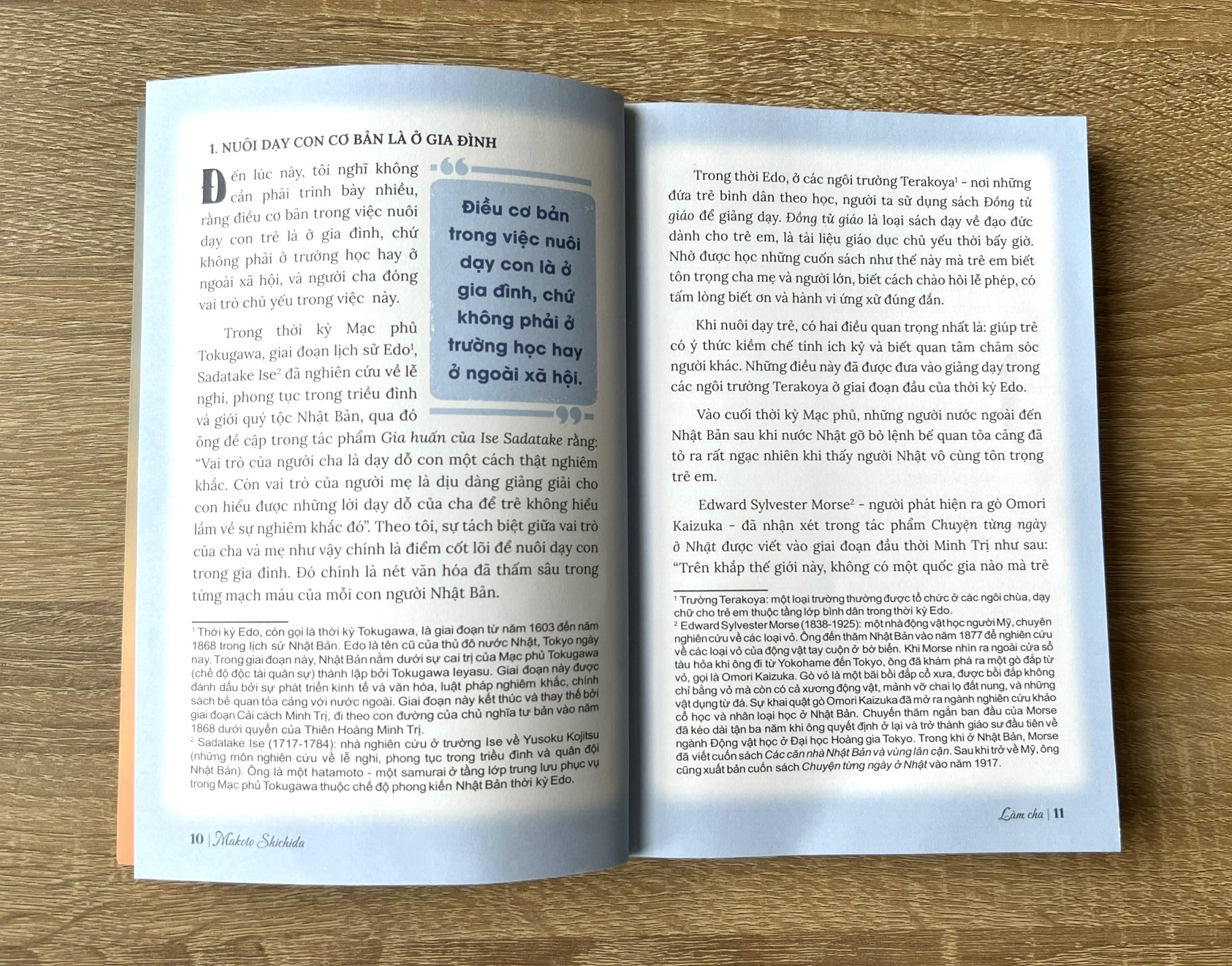 Mua tại TiktokCuốn sách như một bản tóm tắt và thuyết trình chuẩn mực cho các ông bố bận rộn với trăm ngàn lý do khác nhau để thay đổi cách nhìn nhận của họ về vai trò của người làm cha. Sự thay đổi cách nhìn nhận của người cha và sự tham gia tích cực hơn trong việc nuôi dạy con có thể đạt được kết quả ngay tức khắc, chứ không cần phải "chờ con lớn hơn chút nữa". (Theo Viện giáo dục Shichida Việt Nam)