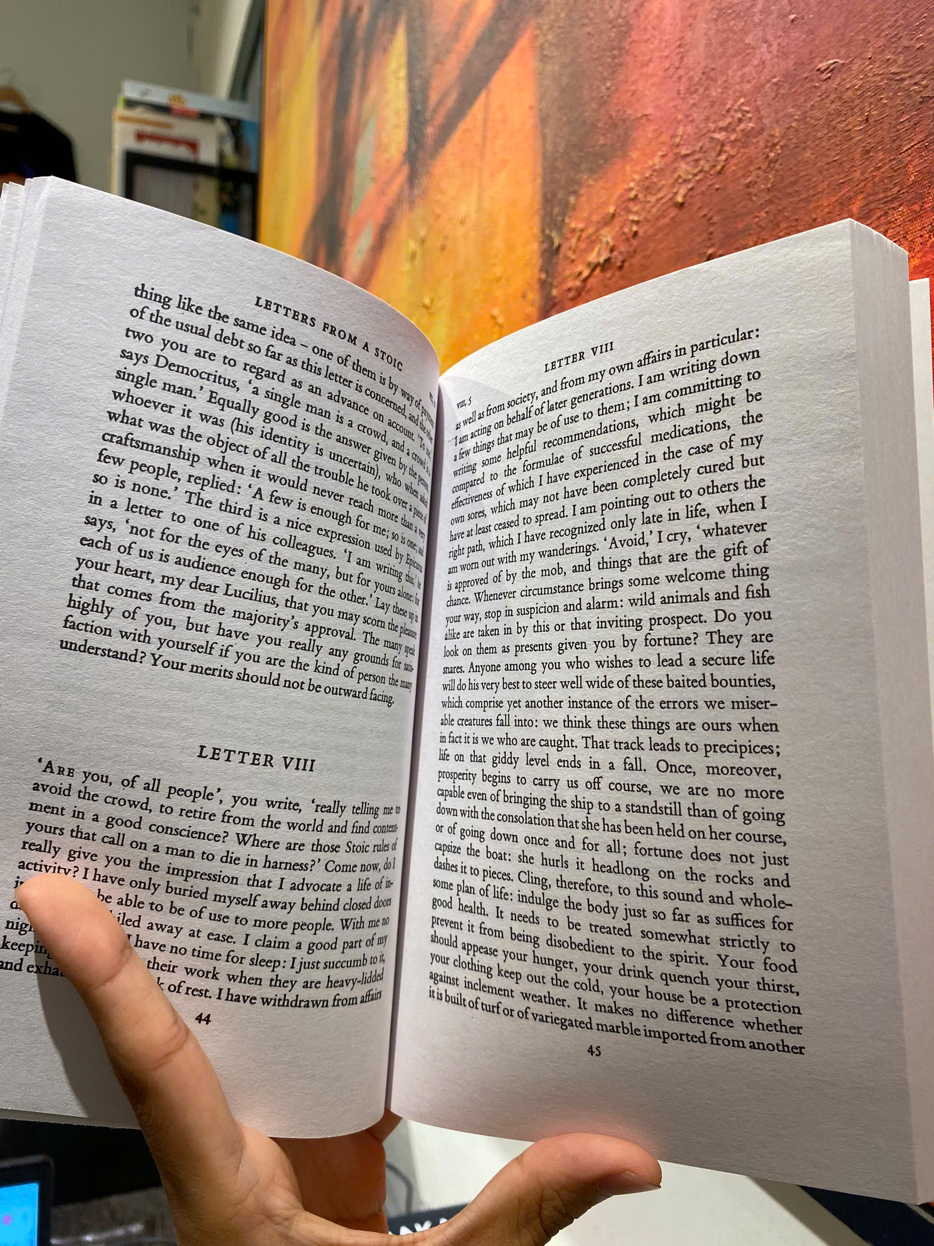 Trong nhiều năm của cuộc đời đầy biến động, khi ông bị đeo bám bởi bệnh tật, lưu đày và nguy hiểm, Seneca là người chỉ đạo Đế chế La Mã. Tuyển tập các bức thư của Seneca cho thấy ông ủng hộ các lý tưởng của Chủ nghĩa Khắc kỷ - trí tuệ của người tự chủ, miễn nhiễm với những thất bại của cuộc sống - trong khi coi trọng tình bạn và lòng dũng cảm, và chỉ trích cách đối xử khắc nghiệt với nô lệ và sự tàn ác trên đấu trường đấu sĩ. Tính nhân văn và sự dí dỏm được thể hiện trong cách diễn giải Chủ nghĩa Khắc kỷ của Seneca là một tuyên bố cảm động và đầy cảm hứng về phẩm giá của tâm trí cá nhân.