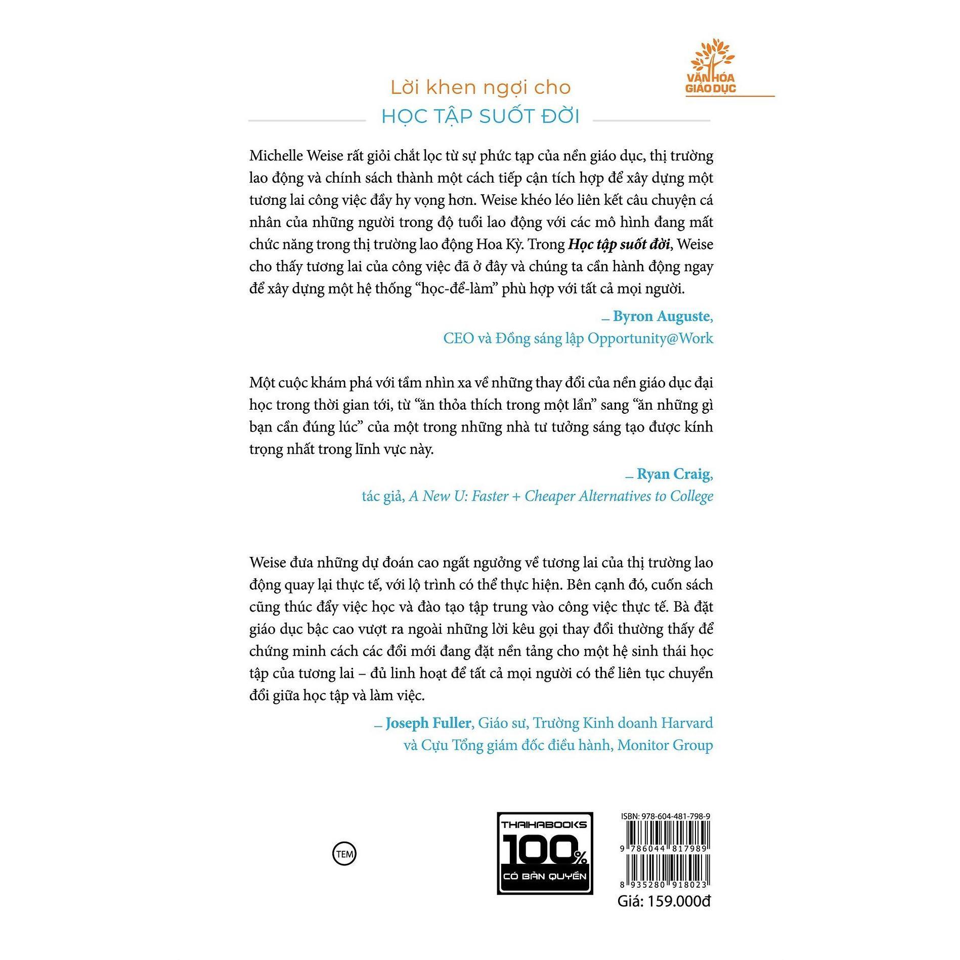 Học tập suốt đời là tài liệu không thể thiếu trên giá sách của bất kỳ ai quan tâm đến thị trường lao động trong tương lai, giáo dục và các công việc sắp tới.