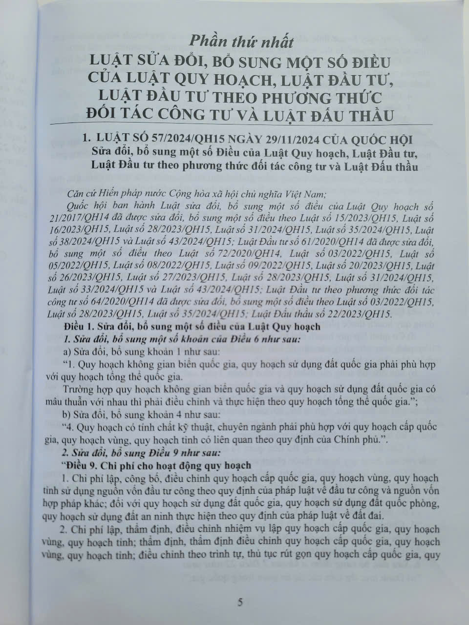 Phần thứ nhất. LUẬT SỬA ĐỔI, BỔ SUNG MỘT SỐ ĐIỀU CỦA LUẬT QUY HOẠCH, LUẬT ĐẦU TƯ, LUẬT ĐẦU TƯ THEO PHƯƠNG THỨC ĐỐI TÁC CÔNG TƯ VÀ LUẬT ĐẤU THẦU