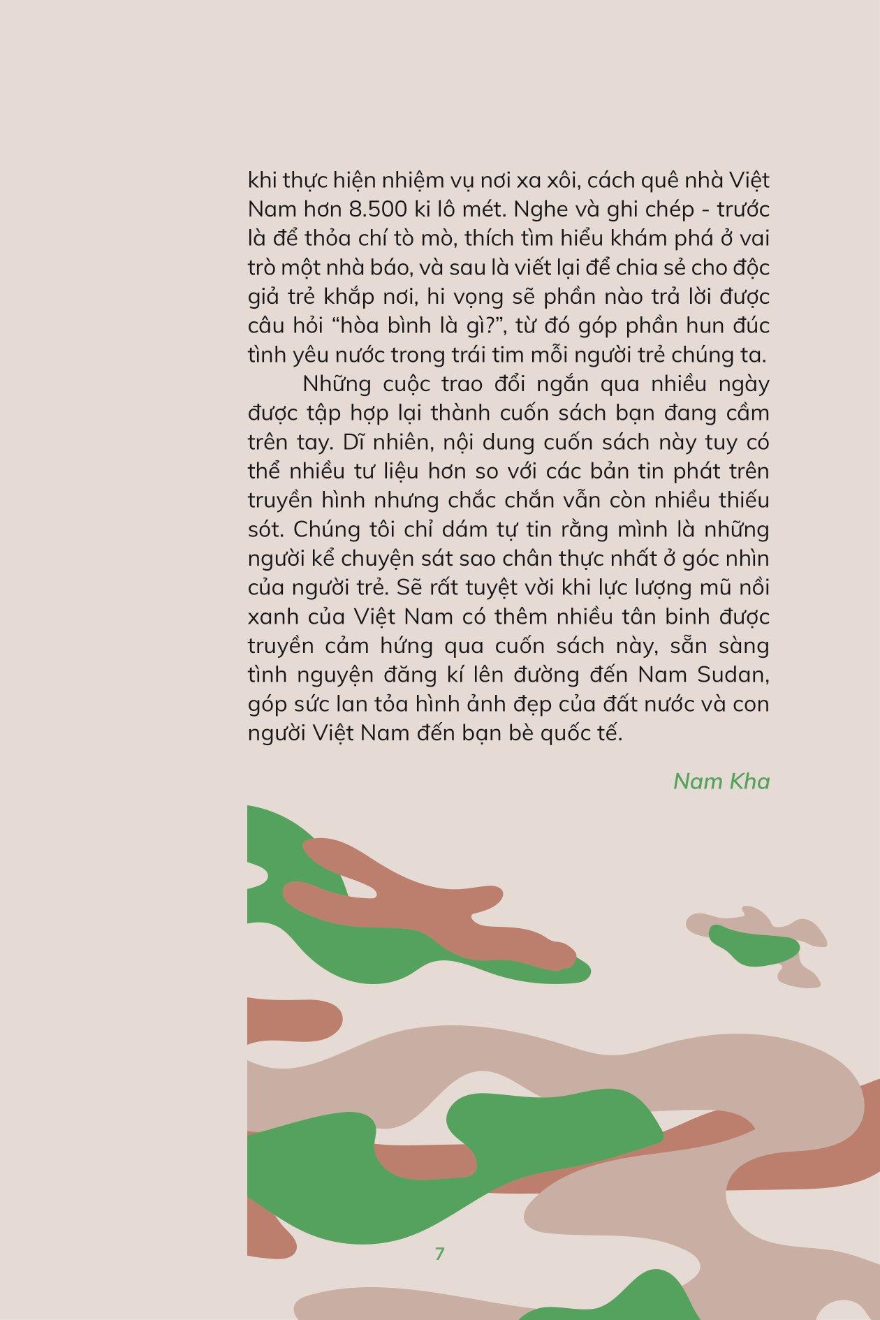 Mua tại TiktokMũ Nồi Xanh Việt Nam - Người Đi Gieo Hạt Hòa Bình Hình ảnh người lính mũ nồi xanh Việt Nam thực hiện nhiệm vụ quốc tế trở nên quen thuộc trong những năm qua. Thế nhưng vẫn còn đó nhiều câu hỏi: Đất nước những người lính đến làm nhiệm vụ ở nơi đâu, sao tên nghe lạ quá? Cuộc sống người dân nơi đó ra sao? Những người lính thực hiện nhiệm vụ gìn giữ hoà bình như thế nào? Mũ nồi xanh Việt Nam - Người đi gieo hạt hòa bình là hành trình của một người trong cuộc. Cùng với người lính trẻ Nguyễn Sỹ Công, bạn chuẩn bị hành trang lên đường đến đất nước Nam Sudan, thực hiện nhiệm vụ của một người lính gìn giữ hòa bình Liên Hợp Quốc. Và chính ở nơi đây, bạn khám phá những điều tuyệt vời nhất khi con người gắn bó với nhau bằng tình yêu thương, cũng như ý nghĩa sâu sắc của từ “hòa bình”.