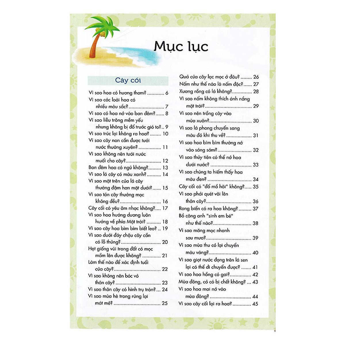Khác với những cuốn sách đi sâu đề cập đến các sự việc và hiện tượng theo hướng khoa học thuần túy, "Mười vạn câu hỏi Vì sao" đưa ra những chủ đề gần gũi và dễ gây hứng thú đối với trẻ các mẩu chuyện của những nhân vật đáng yêu rút ra từ tình huống thực tế, trẻ sẽ được giải đáp thỏa đáng những thắc mắc thường gặp trong các lĩnh vực quen thuộc của cuộc sống hằng ngày từ Cơ thể và Cuộc sống, Thế giới tự nhiên, Thế giới động vật cho đến Vũ trụ và Trái đấ