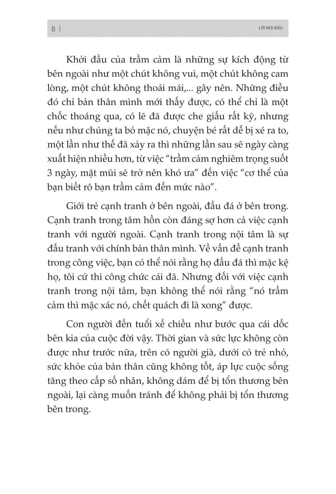 Bất kỳ ai cũng nên đọc cuốn sách này. Bởi vì với người trẻ, đây là một lời nhắc nhở để họ biết cách cân bằng cuộc sống và làm chủ cảm xúc. Với người trưởng thành, cuốn sách giống như một “chiếc gương” để họ nhìn lại hành trình của m.ình, tìm thấy những góc khuất cần được sửa đổi. Còn với những người lớn tuổi, đây là một nguồn cảm hứng giúp họ tái tạo niềm vui sống và tận hưởng cuộc sống một cách trọn vẹn.