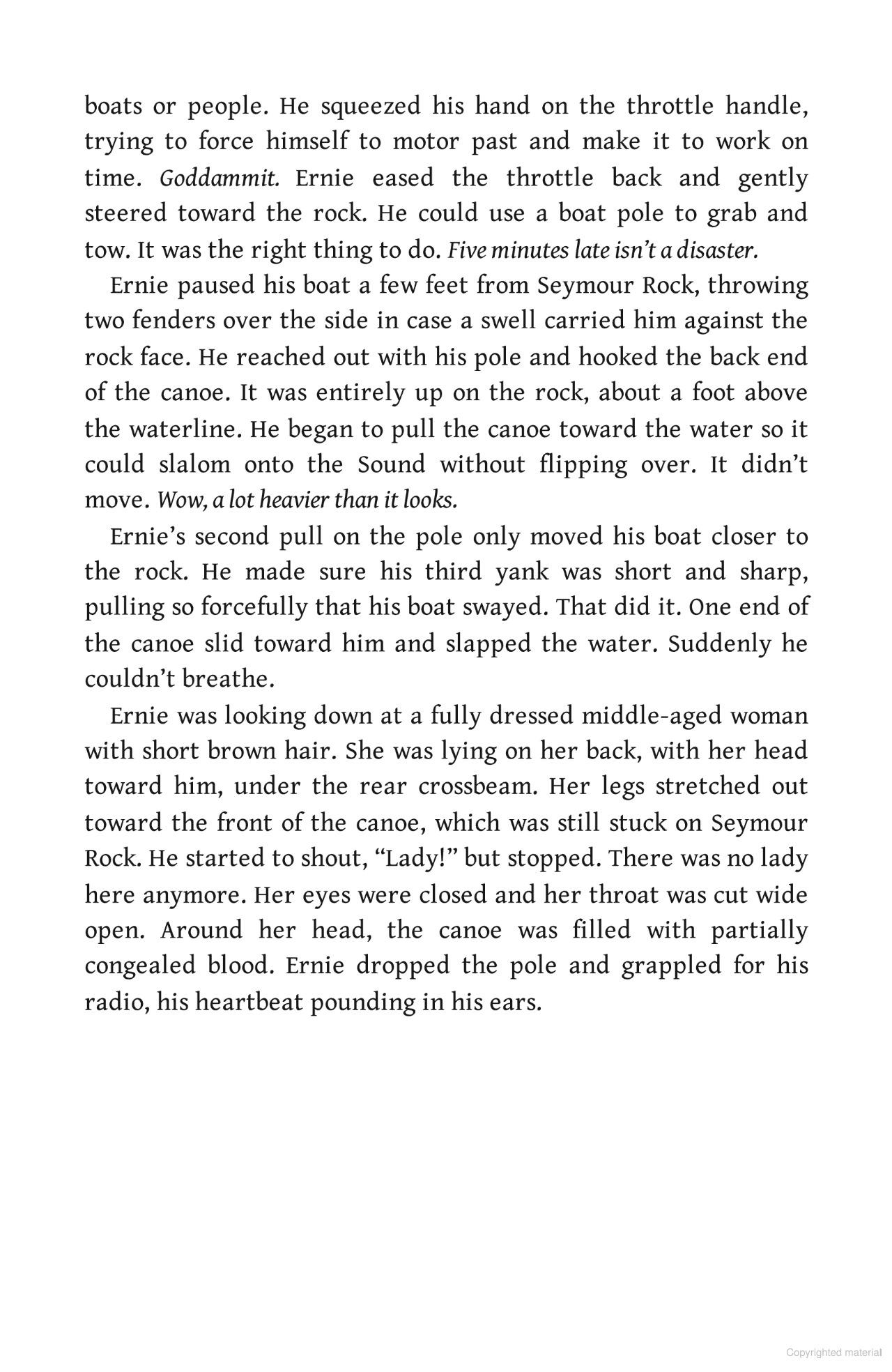 A red canoe sits abandoned on Seymour Rock, right where the Saugatuck River hits the Long Island Sound. The elegantly dressed corpse of a woman lies inside….