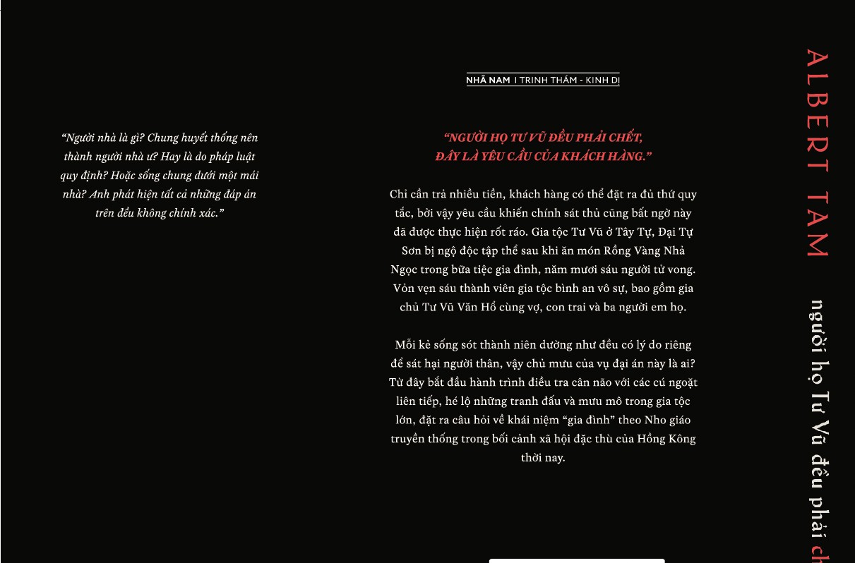 Nhà phát hành: Nhã Nam Nhà xuất bản: Hội Nhà Văn Tác giả: Albert Tam Dịch giả: Hồng Hạnh Số trang: 457 Kích thước: 14 x 20.5 cm "NGƯỜI HỌ TƯ VŨ ĐỀU PHẢI