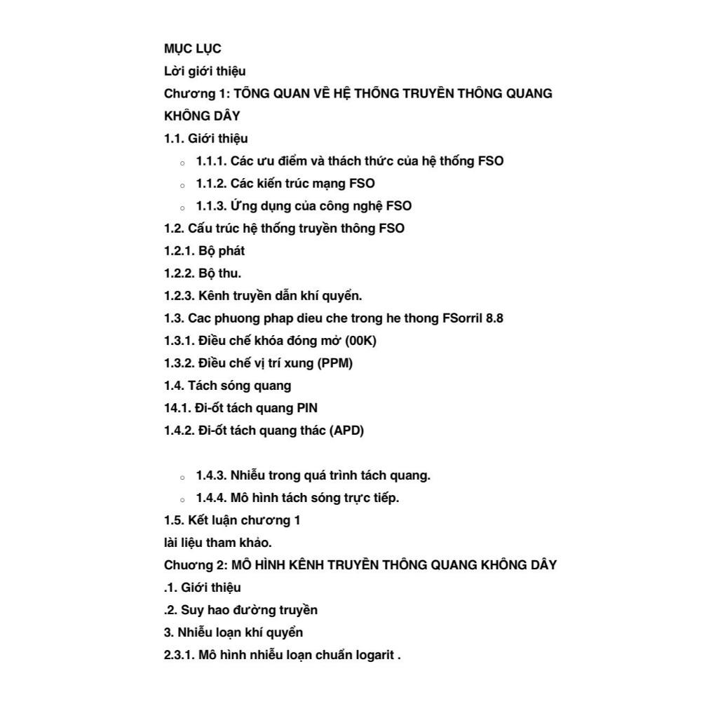 Truyền thông quang không dây (FSO) là công nghệ tiên tiến cho phép truyền số liệu với tốc độ cao nhờ ánh sáng qua môi trường không khí thay vì qua sợi quang. FSO đặ biệt có lợi thế ở các khu vực đô thị, nơi việc lắp đặt cáp quang khó khăn và tốn kém. Đây cũng là giải pháp linh hoạt cho các kết nối tạm thời hoặc tình huống phục hồi sau thảm họa. Tuy nhiện, truyền thông quang không dây đòi hỏi phải có đường truyền tầm nhìn thẳng giữa đầu phát và đầu thu và có thể bị ảnh hưởng bởi các điều kiện khí quyển như : sương mù, mưa lớn và đặc biệt là nhiều loạn khí quyển
