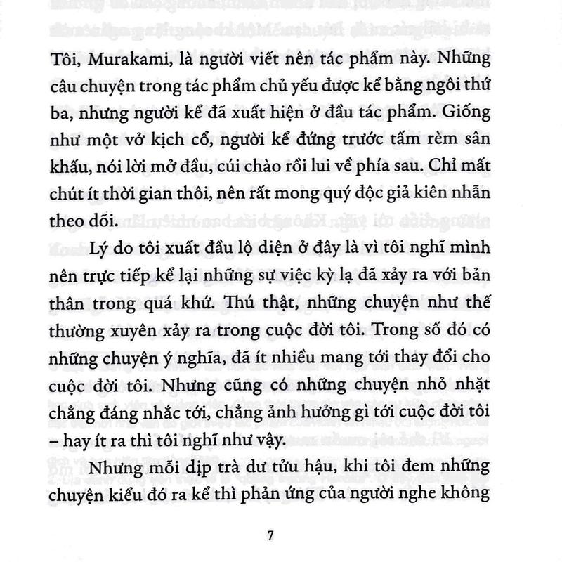 Haruki Murakami, như mọi lần, lặng lẽ phá bỏ hàng rào giữa hiện thực và hư ảo, giữa thế giới bên này và thế giới bên kia, tiến vào những tầng tối tăm và sâu thẳm của xứ sở tiềm thức, tước từng mảnh linh hồn và cảm xúc ra khỏi cuộc sống thường nhật tầm thường.