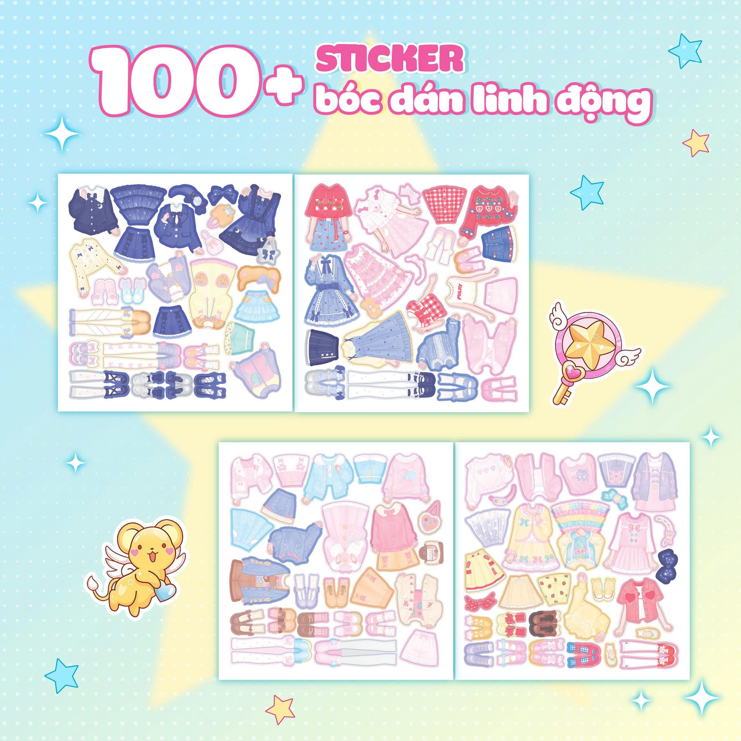 - 100+ Sticker đa dạng – sáng tạo không giới hạn Váy áo, phụ kiện và chi tiết dễ thương giúp bé thoải mái phối đồ theo ý thích. Mỗi cuốn có 10 công chúa Anime với phong cách riêng, cho bé nhiều trải nghiệm mới lạ.