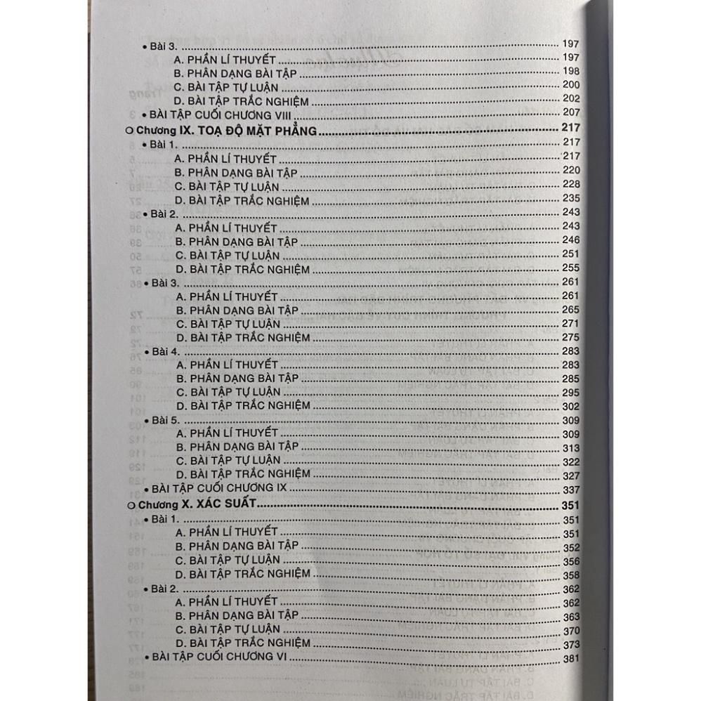 Mua tại TiktokNội dung gồm có: Chương VI. Hàm số bậc hai và đồ thị Chương VII. Bất phương trình bậc hai. Phương trình quy về bậc hai Chương VIII. Đại số tổ hợp Chương IX. Toạ độ trong mặt phẳng Chương X. Xác suất Bài tập các chương