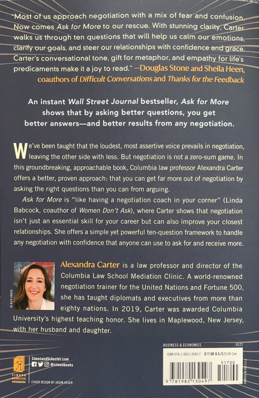 Một cuốn sách bán chạy tức thì của Tạp chí Phố Wall và "niềm vui khi đọc" (Douglas Stone và Sheila Heen, tác giả của Những cuộc trò chuyện khó khăn), Ask for More cho thấy rằng bằng cách đặt những câu hỏi hay hơn, bạn sẽ nhận được câu trả lời tốt hơn - và kết quả tốt hơn từ bất kỳ cuộc đàm phán nào.