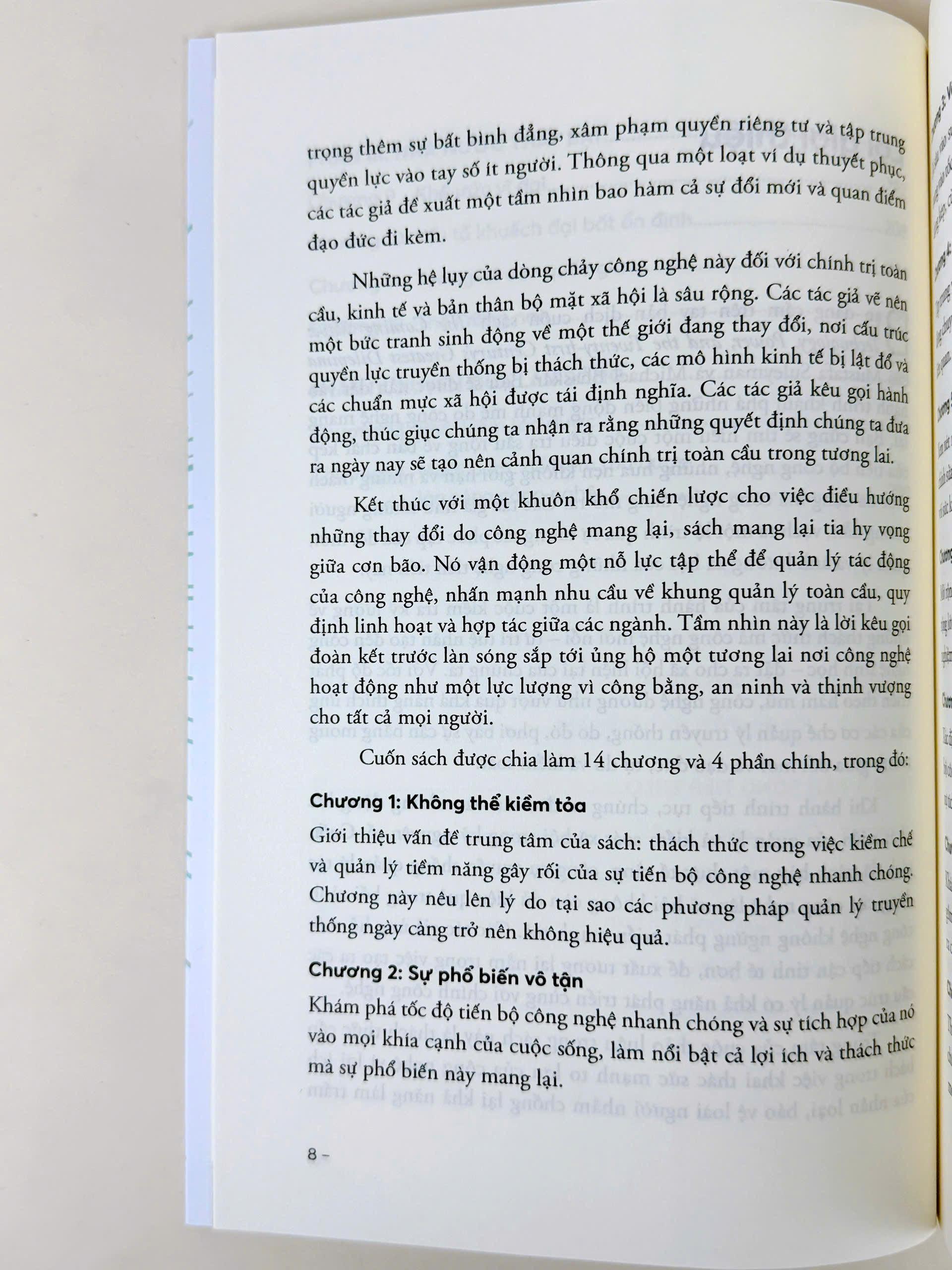 Chúng ta đang tiến tới một ngưỡng quan trọng trong lịch sử loài người. Chẳng bao lâu nữa bạn sẽ sống được bao quanh bởi AI, máy in DNA và máy tính lượng tử, mầm bệnh được thiết kế và vũ khí tự động, trợ lý robot,... Chúng sẽ tổ chức cuộc sống của bạn, điều hành doanh nghiệp của bạn và điều hành các dịch vụ cốt lõi của Chính phủ.