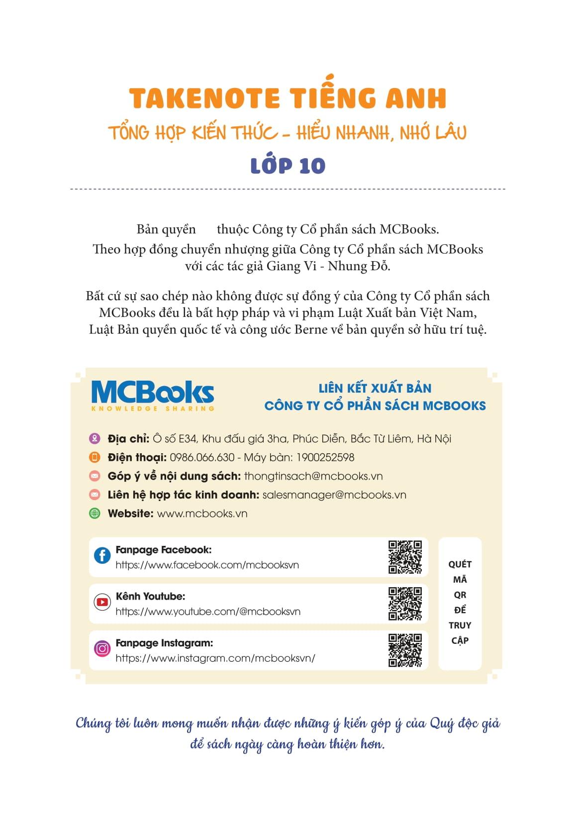 Take Note Tiếng Anh Lớp 10 là cuốn sách được thiết kế đặc biệt dành cho học sinh lớp 10 đang học bộ sách giáo khoa Global Success, nhằm hỗ trợ các bạn trong quá trình học và ôn tập môn tiếng Anh – một trong những môn học được đánh giá là nhiều thử thách, đặc biệt khi chuẩn bị cho kỳ thi THPT Quốc gia.