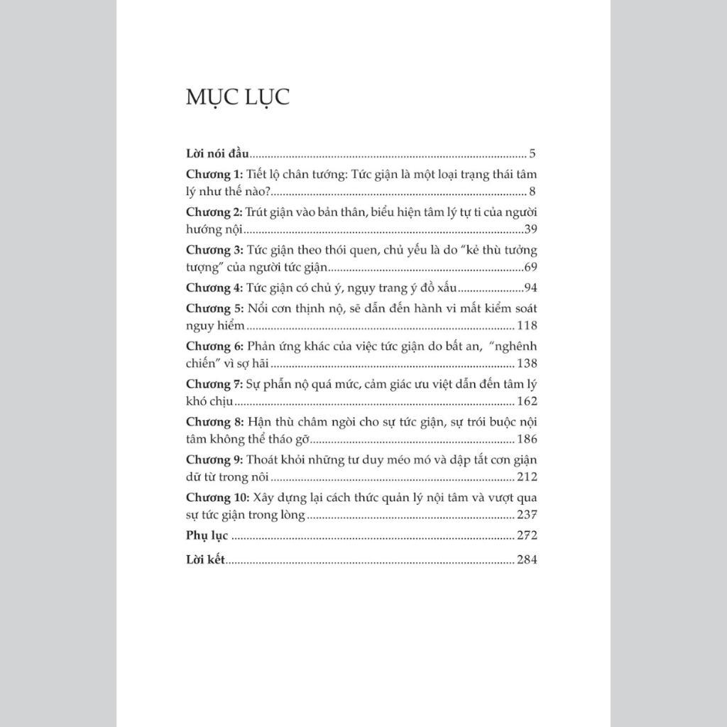Muốn kiểm soát được cơn giận của bản thân, chúng ta cần phải có nghị lực và tự nhận thức về hậu quả của nó mang lại. Một khi bạn hiểu được nguyên nhân gây ra sự tức giận của mình, bạn sẽ có thể kiểm soát tốt nhất và biến nó thành động lực tích cực để có một cuộc sống tốt đẹp hơn. Hy vọng cuốn sách này sẽ giúp bạn có thể kìm nén được sự tức giận của mình một cách hiệu quả, cải thiện mối quan hệ với những người xung quanh và thực sự sống một cuộc sống hạnh phúc và bình yên