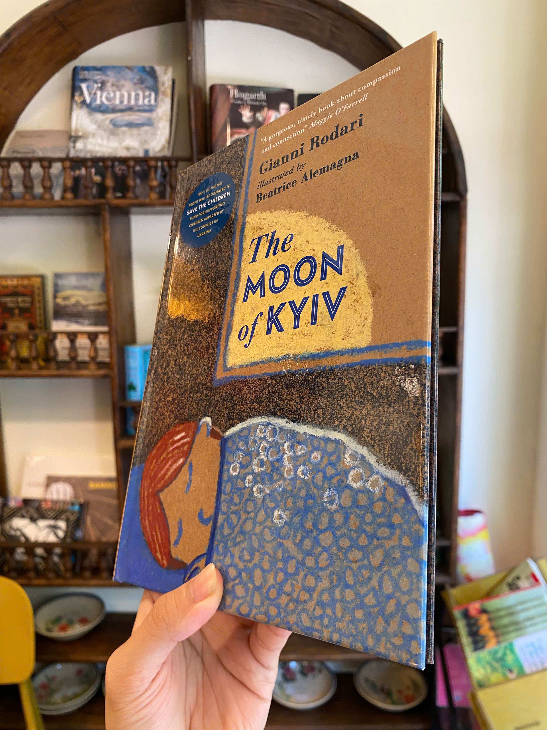 Năm 1955, nhà thơ người Ý được yêu mến Gianni Rodari đã sáng tác một bài đồng dao mang tên "Mặt Trăng Kyiv". Đó là một bài thơ về tình người chung của chúng ta - bài thơ nhắc nhở chúng ta rằng, dù chúng ta đến từ đâu hay sống ở đâu, tất cả chúng ta đều tồn tại dưới cùng một vầng trăng. Trong những ngày sau khi chiến tranh bùng nổ ở Ukraine, những lời ca này đã lan truyền khắp nước Ý: chúng trở thành lời kêu gọi hòa bình. Sáu thập kỷ sau, chúng lại vang vọng và trở nên gần gũi hơn bao giờ hết. Giờ đây, lần đầu tiên, bài thơ được minh họa bởi Beatrice Alemagna, người có những bức tranh tuyệt đẹp, hòa quyện với lời thơ của Rodari về hy vọng, sự thuần khiết và sức mạnh.