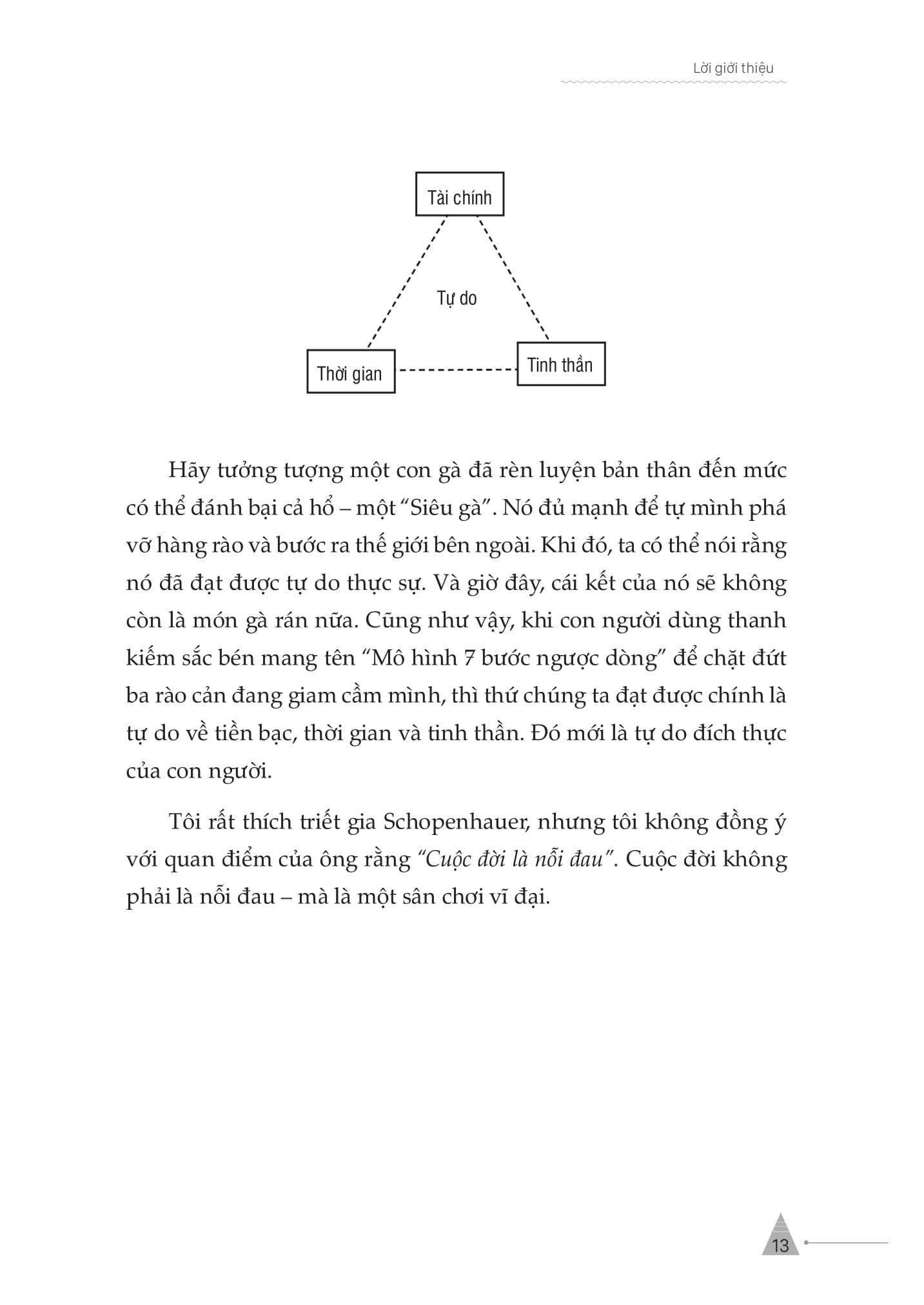 Cuốn sách được chia thành 8 chương chính, với trọng tâm là “Mô hình 7 bước ngược dòng” – một hệ thống tư duy dẫn dắt người đọc từng bước thoát khỏi rào cản tâm lý, di truyền và xã hội để kiến tạo tự do thực sự.