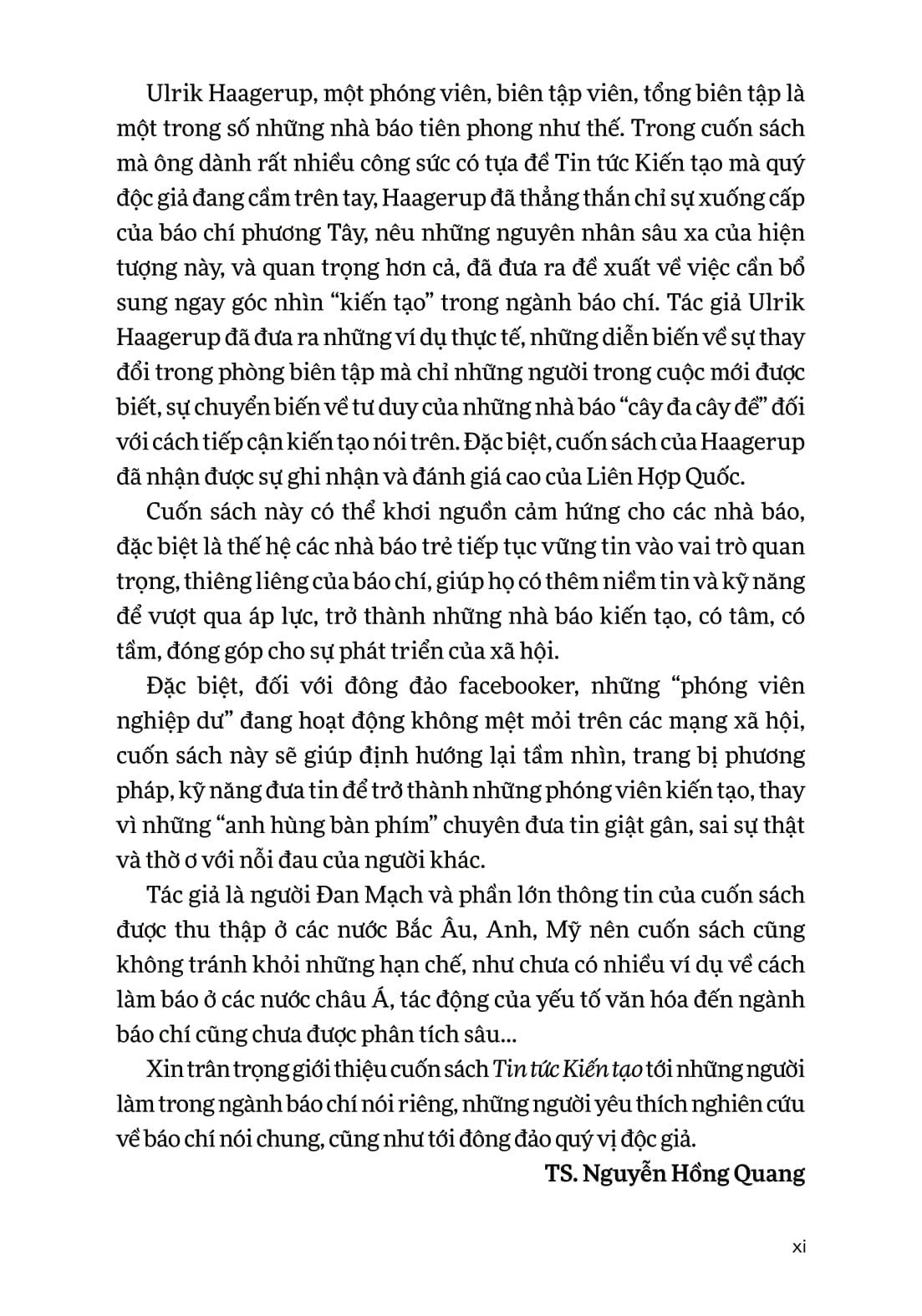 Tác giả Ulrik Haagerup nguyên là Giám đốc điều hành của Đài phát thanh – truyền hình Quốc gia Đan Mạch; Fouder và CEO của Viện nghiên cứu Tin tức xây dựng (Constructive Institute) mục tiêu cải thiện văn hóa tin tức toàn cầu.