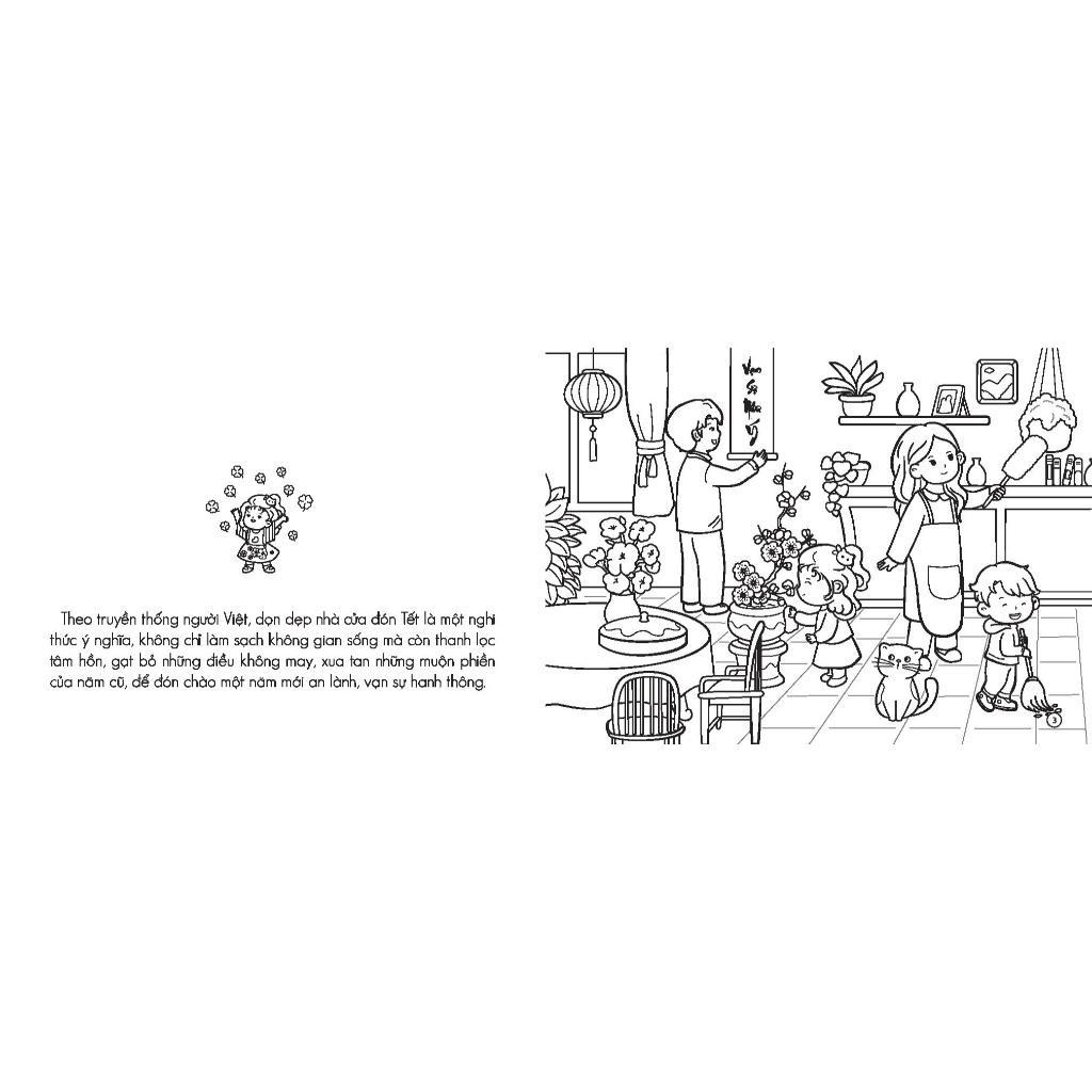 Cuốn sách không chỉ mang đến những hình ảnh sinh động về các lễ hội đặc sắc như múa lân, chợ Tết, mà còn giúp các bé vừa học, vừa chơi, thêm yêu nét đẹp truyền thống dân tộc.