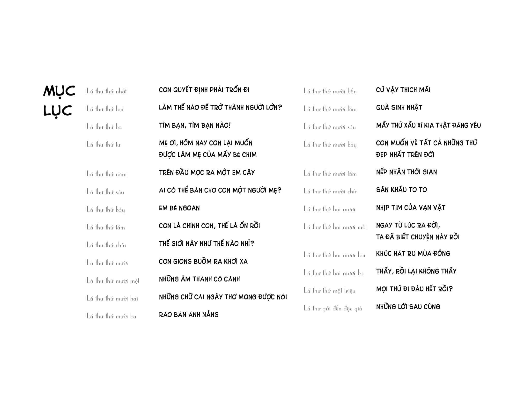 Cuốn sách gồm 24 bức thư viết dưới góc nhìn của một đứa trẻ, kể lại những suy nghĩ, thắc mắc hồn nhiên về thế giới xung quanh. Nhân vật chính, như một bé gấu mèo nhỏ, không ngừng quan sát, khám phá và gửi gắm tâm tư của m.ình vào từng trang giấy. Mỗi bức thư là một câu chuyện nhỏ, một khoảnh khắc trong trẻo nhưng đầy ý nghĩa về tình mẹ con, về thiên nhiên, về những rung cảm dịu dàng với cuộc sống.