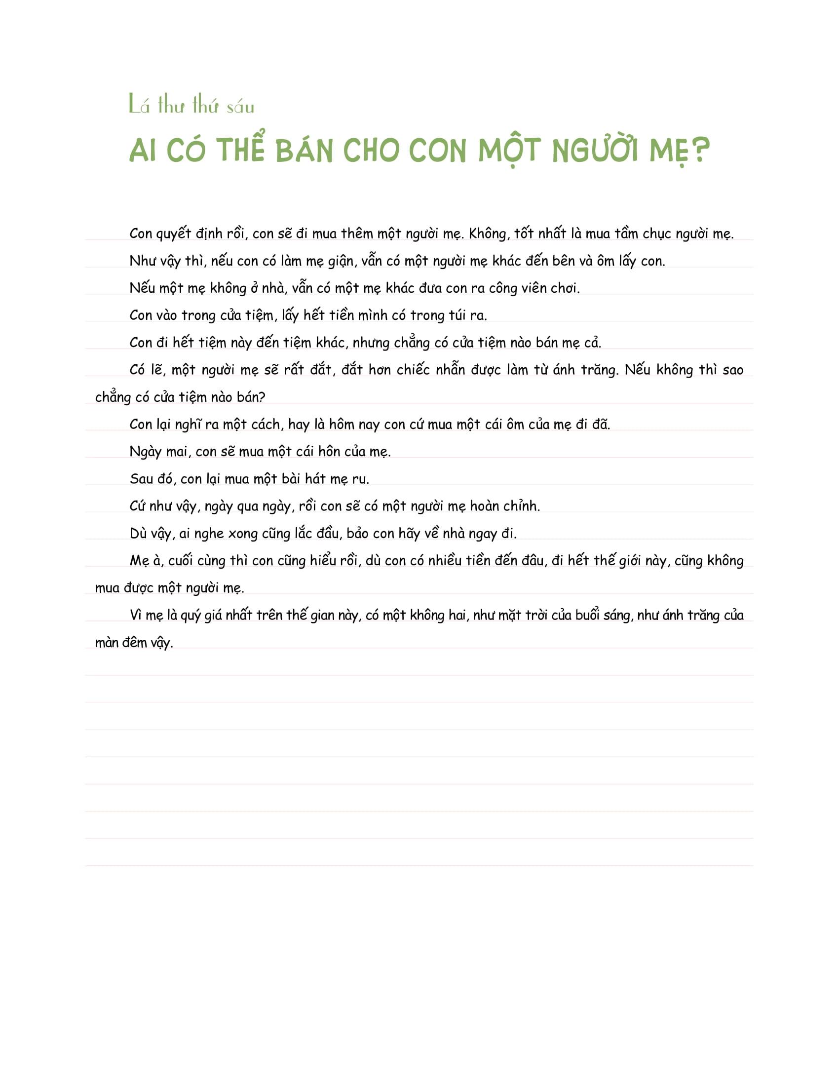 Lá thư thứ sáu: Ai có thể bán cho con một người mẹ?