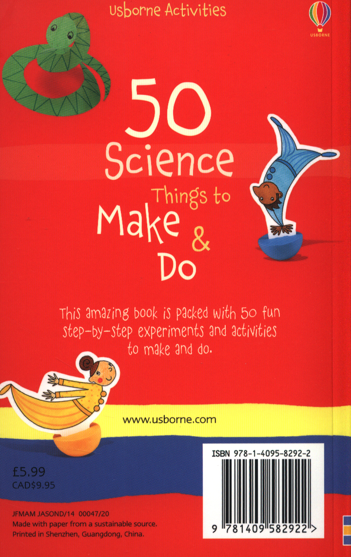 50 Science things to make and do A handy-sized paperback book with 50 fun, step-by-step experiments and activities for young scientists. Activities include creating a light and shadow show, separating colours in a fascinating ink