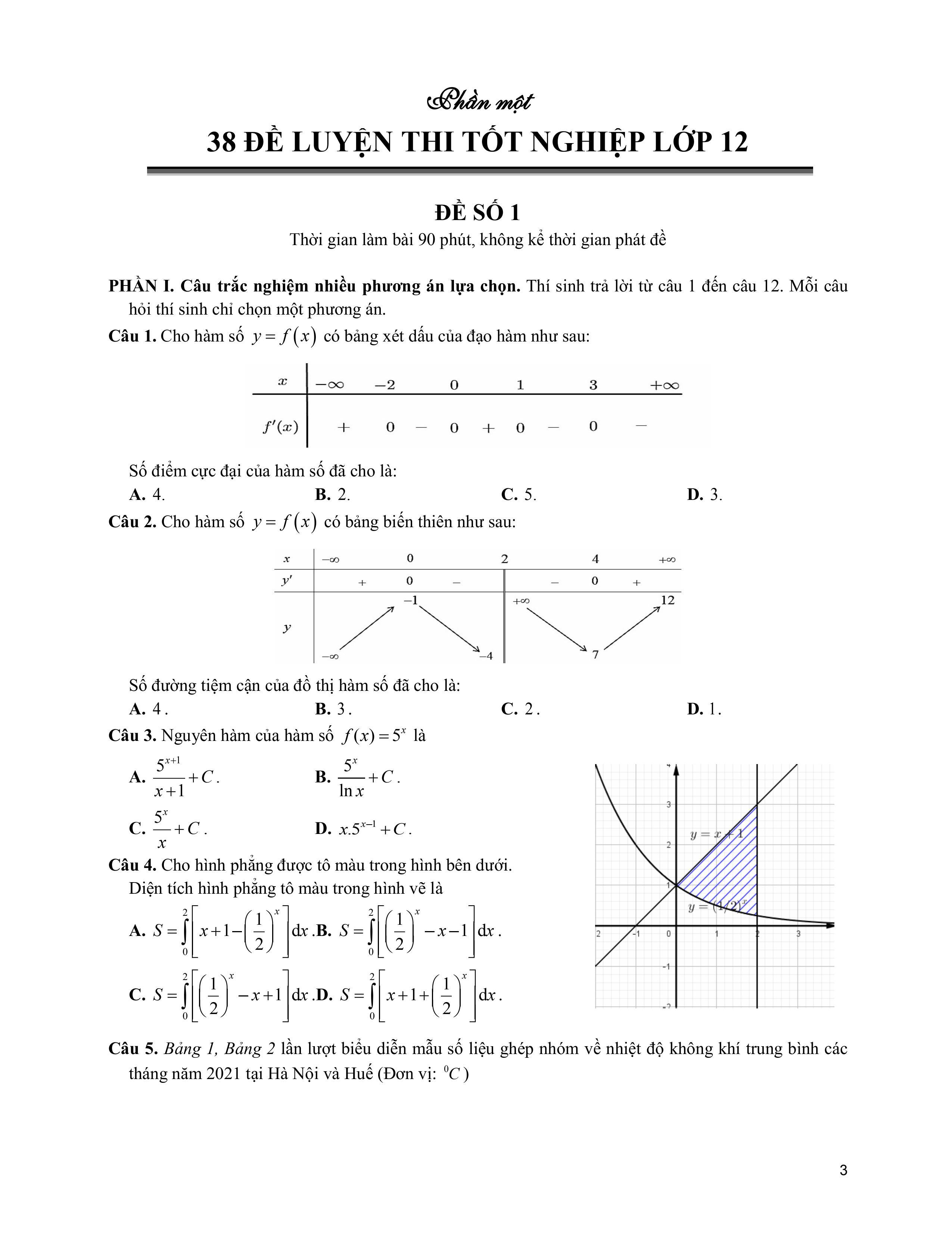 Nhằm tạo điều kiện cho Học sinh có nguồn tài liệu ôn tập cũng như Giáo viên có nguồn tài liệu tham khảo. Chúng tôi biên soạn cuốn sách TUYỂN TẬP 38 ĐỀ ÔN THI TỐT NGHIỆP LỚP 12 MÔN TOÁN. Cấu trúc cuốn sách gồm 38 đề ôn và sau đó là đáp án và lời giải 38 đề. Mỗi đề gồm có 3 phần theo đúng cấu trúc mới của BGD: