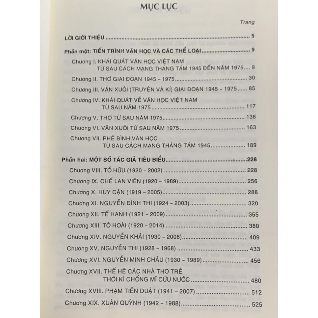 Mua tại TiktokCông ty Học Liệu Sư Phạm giới thiệu: Nội dung gồm có: Phần 1: Tiến trình Văn học và các thể loại: gồm có 7 chương, khái quát về hai giai đoạn văn học 1945- 1975 và từ sau năm 1975, tiến trình và thành tựu của các thể loại ở mỗi giai đoạn