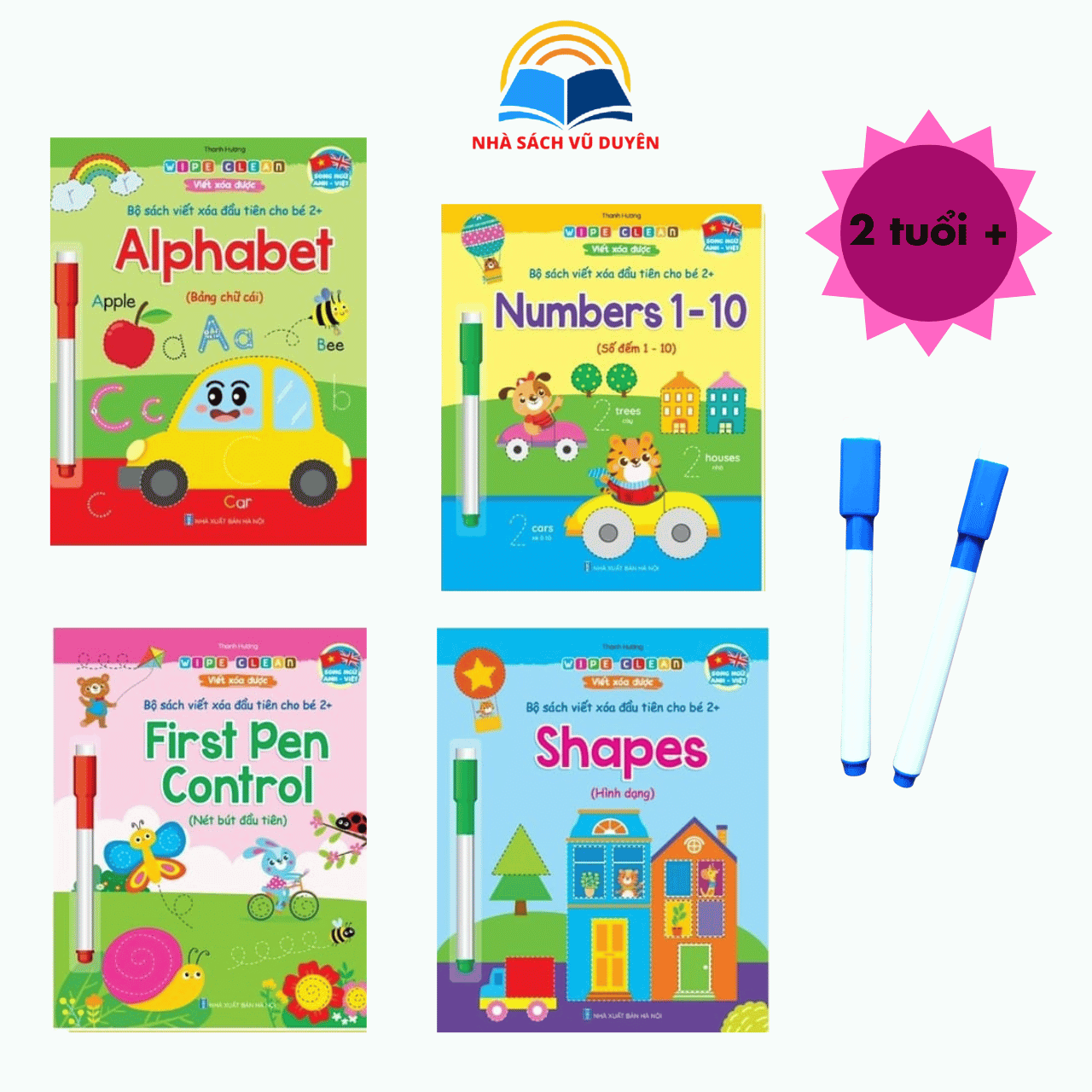 ✨Sách - Wipe Clean - Viết Xóa Được: Bộ Sách Viết Xóa Song Ngữ Đầu Tiên Cho Bé (4 Quyển Tặng Kèm 2 Bút)