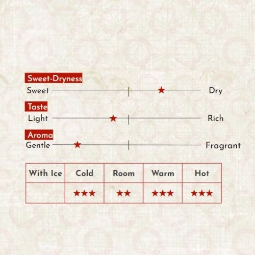 Kinran Fujismusume Tokubetsu Junmaishu Nhà máy r'ượu sake lâu đời Goto được thành lập vào năm 1677, nằm ở Kurogi-cho, thành phố Yame, tỉnh Fukuoka. Thương hiệu đại diện của Goto Sake Brewery - "Fujimusume" có tỷ lệ đánh bóng gạo là 60% và nồng độ cồn từ 15% đến dưới 15,9%, Kinran Fujimusume Tokubetsu Junmaishu có vị đậm đà đặc trưng kiểu cũ và rất dễ uống. Dòng sake: Junmai Tỉ lệ đánh bóng gạo: 60% Tỉ lệ axit: Sake Meter Value (SMV): Thành phần: Gạo tỉnh Fukuoka và men koji (sản xuất tại Nhật Bản) Sử dụng: Dùng uống trực tiếp. Thể tích: 720ml. Nồng độ cồn: 15% Lưu ý độ tuổi được phép sử dụng đồ uống có cồn theo quy định, phụ nữ có thai và cho con bú nên hạn chế sử dụng. Bảo quản nơi mát lạnh, tránh ánh nắng trực tiếp. Để đảm bảo chất lượng sake nên bảo quản trong ngăn mát tủ lạnh khi không dùng hết. NSX: Goto sake brewery co.,ltd NK&PP: Công ty TNHH Starmark Vietnam Xuất xứ: Nhật Bản