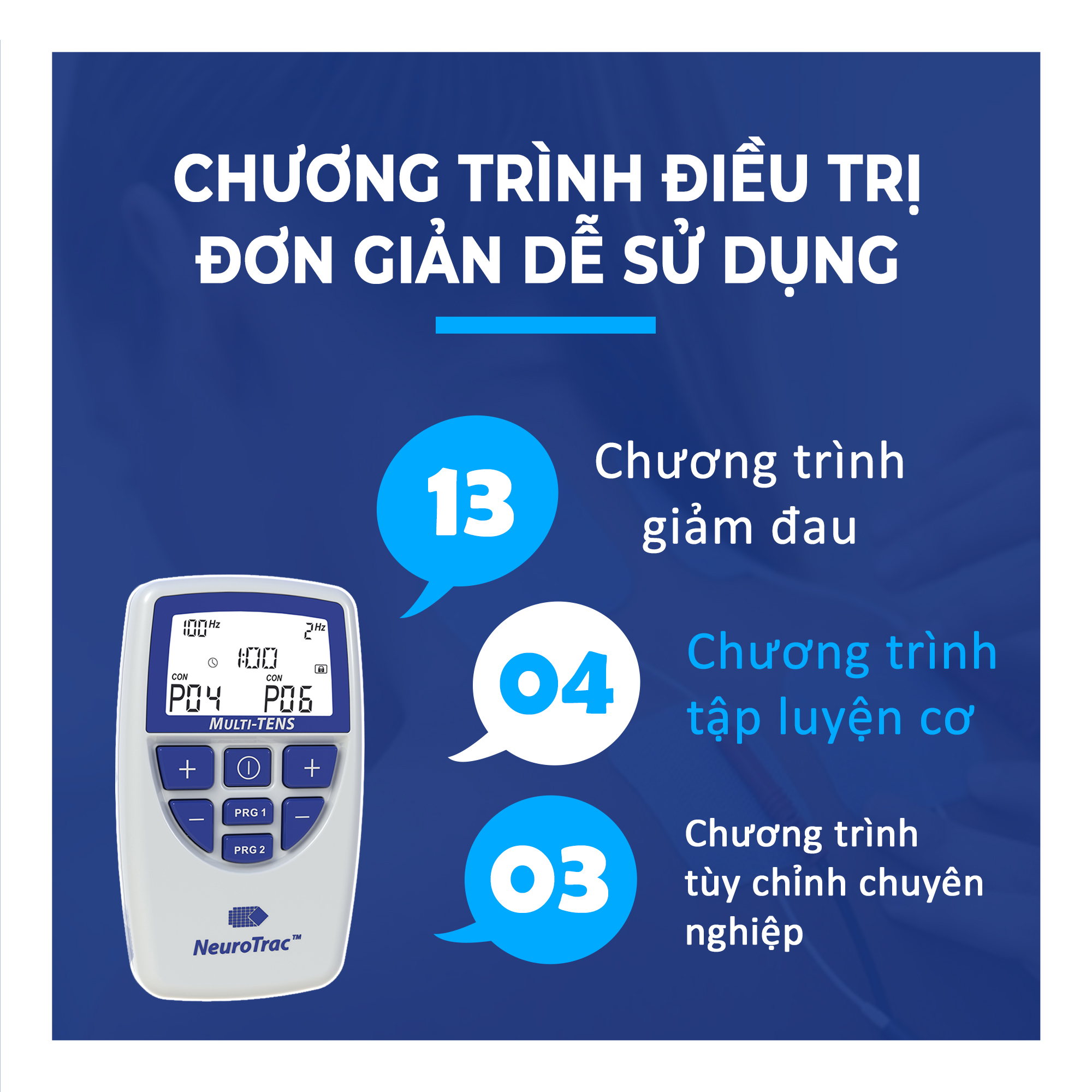 - Sử dụng dòng TENS ( tác dụng giảm đau ) và NMS ( tác dụng kích thích cơ )