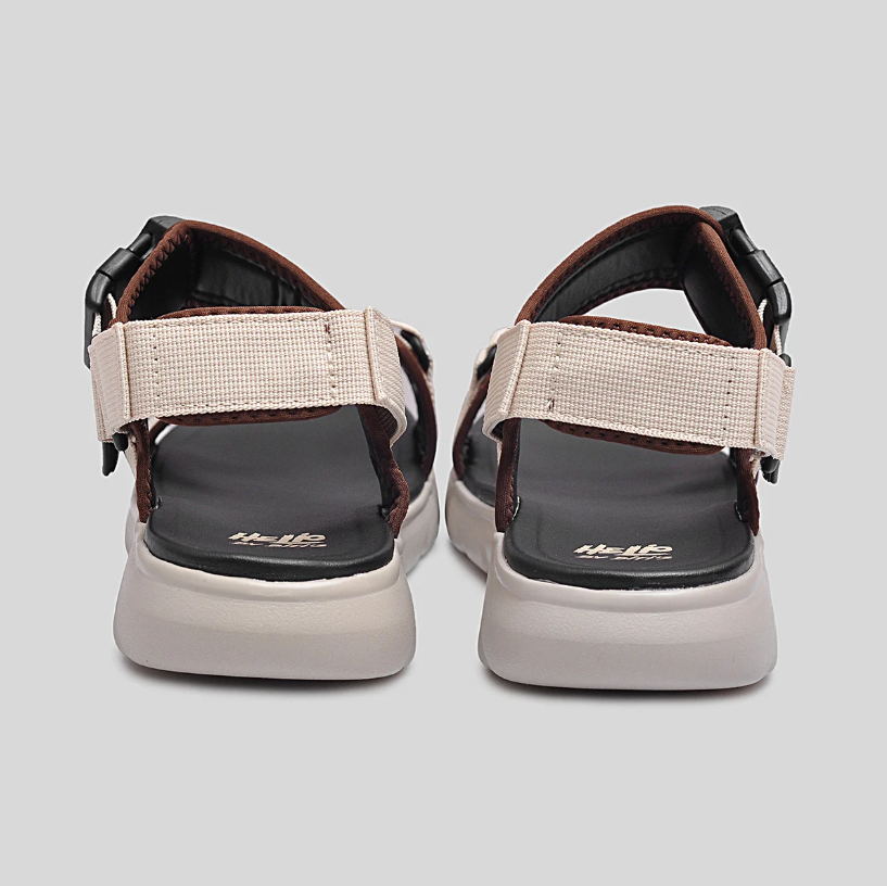 Dép sandal Helio BEB005000 nâu phối kem mang hơi hướng retro hiện đại, với phối màu nâu chocolate trầm ấm kết hợp đường viền kem nhẹ, cực kỳ hợp cho những bạn trẻ yêu thích phong cách tối giản – cổ điển pha chút cá tính.