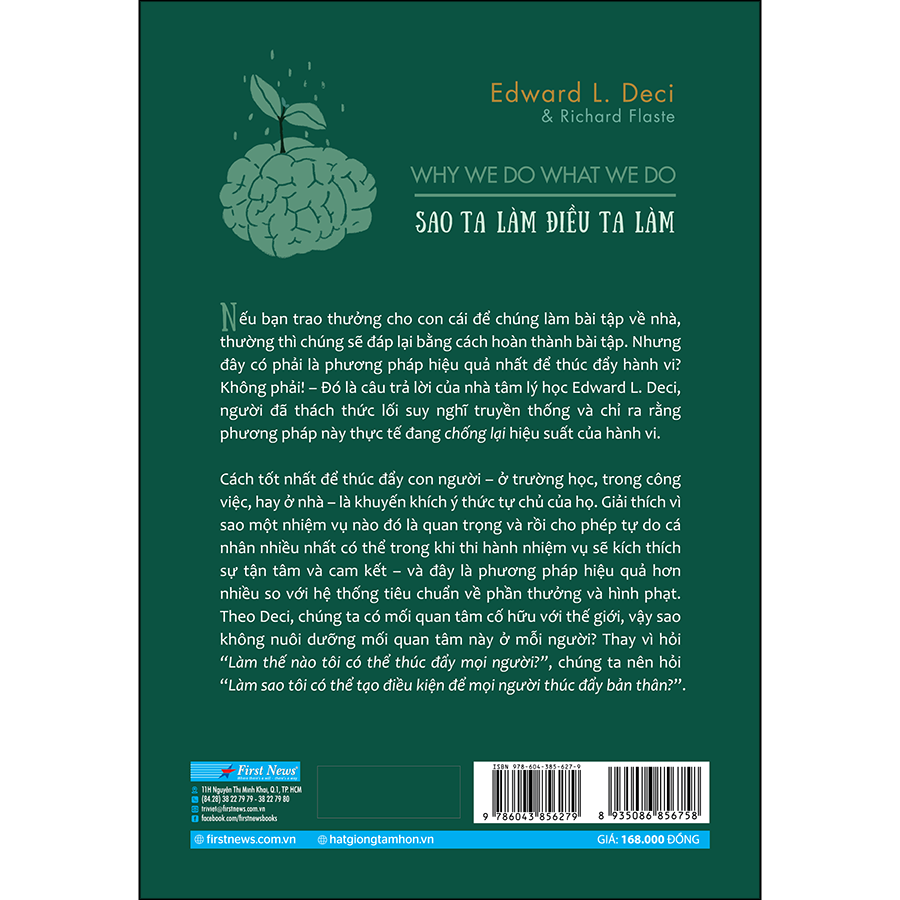 Bắt nguồn từ trăn trở tương tự về việc tự chủ hay bị kiểm soát, Edward L. Deci cùng cộng sự của mình đặt ra câu hỏi: Tại sao trẻ em chào đời với thiên hướng khát khao học hỏi, chúng tò mò và hiếu kỳ với tất cả mọi thứ, thế nhưng tính hiếu kỳ và năng lực học hỏi này dần suy giảm khi bọn trẻ bước vào môi trường học đường? Bằng những nghiên cứu và quan sát của mình, Edward L. Deci đã cho ra đời quyển sách “Sao ta làm điều ta làm”, nhằm giúp giải quyết những trăn trở về động lực thúc đẩy hành vi con người thông qua các nghiên cứu về khía cạnh nền tảng của Tâm lý học hành vi: Động lực.