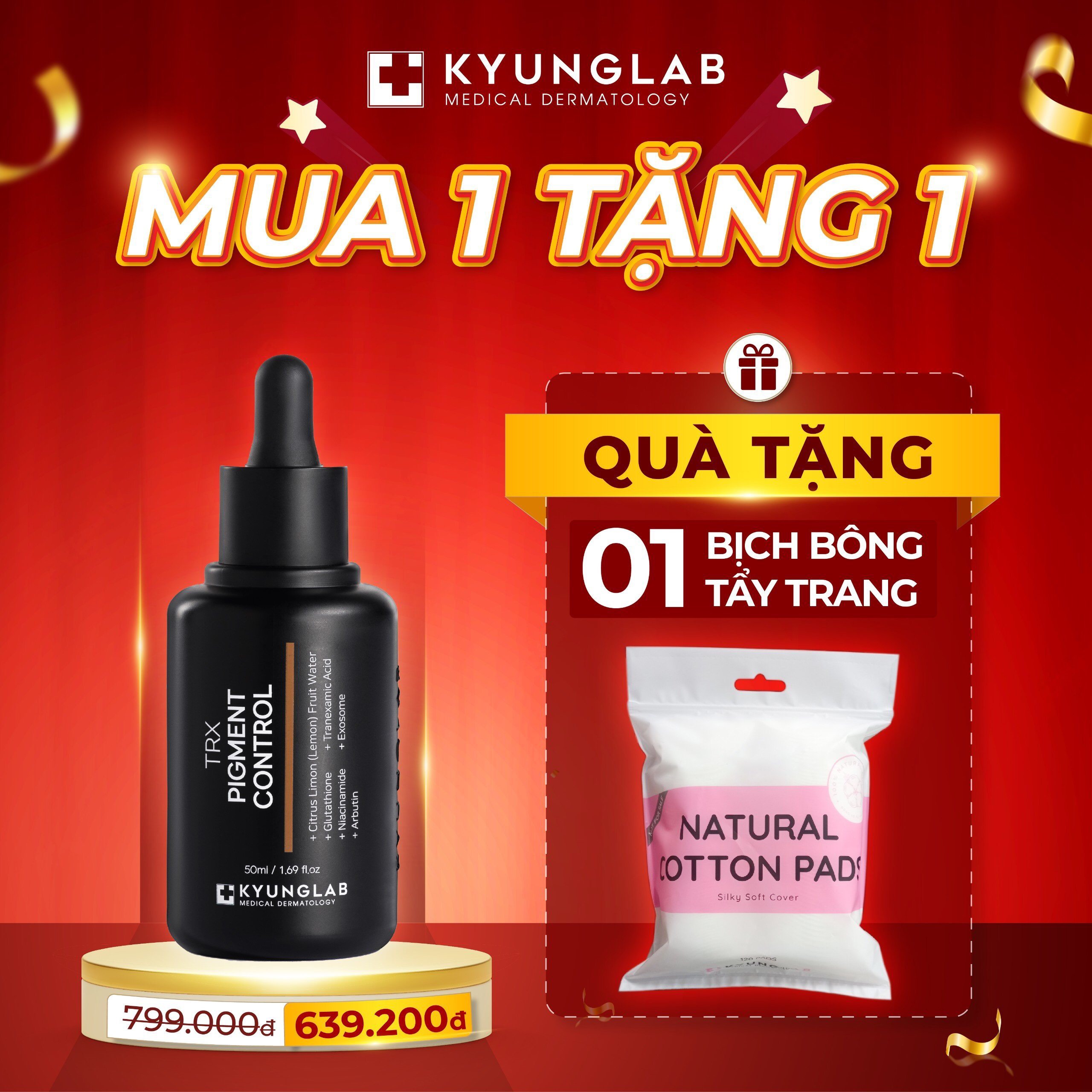 Serum giảm nám Kyung Lab Pure TRX Serum giảm nám Kyung Lab Pure TRX hỗ trợ chăm sóc da trẻ hóa toàn diện. Công thức dưỡng da vượt trội, dưỡng da thẩm thấu nhanh các hoạt chất.    Công Dụng Của Tinh Chất Kyung Lab Pure Trx Pigment Control  Sáng da, hủy nám hoàn hảo từ 4 hoạt chất vàng: Tranexamic, Glutathione, Arbutin, Niacinamide  Ngăn ngừa tích tụ sắc tố melanin, làm mờ vết nám, sạm và làm sáng da  Kích thích biến đổi melanin sắc tố tối thành sắc tố sáng,  Làm mờ vết thâm sau mụn  Làm dịu làn da kích ứng, giảm mẩn đỏ rõ rệt  Bảo vệ làn da khỏi tổn thương bởi ánh nắng, bụi mịn, nấm  Làm dịu, phục hồi làn da bị tổn thương bởi tia UVA / UVB.  Phù hợp với: da hỗn hợp  Tình trạng da: Da không đều màu da, da cải thiện tình trạng sắc tố, da thâm, mụn, tàn nhang Kiểm Nghiệm Thực Tế: Theo nghiên cứu trên 2000 người sử dụng tại Châu Á, trong đó có 120 người Việt cho kết quả:  97.1% cảm nhận da sáng lên từ 2 – 3 tone  70.5% cảm thấy các vết nám, tàn nhang, thâm mụn mờ hẳn  86.2% cảm thấy da săn chắc, đàn hồi hơn  89.5% Cảm thấy lỗ chân lông nhỏ hơn     Thành Phần Của Tinh Chất Chất Kyung Lab Pure Trx Pigment Control  Tranexamic Acid: Giúp làm mờ rõ rệt các vết đổi màu da do tiếp xúc với ánh nắng mặt trời. Đồng thời, thành phần này cũng có thể giúp: Làm mờ vết thâm sau mụn với bất kỳ màu da nào và dường như đặc biệt hiệu quả đối với tông màu da tối. Giảm mẩn đỏ rõ rệt trên da.  Glutathione: Biến đổi melanin sắc tố tối thành sắc tố sáng, giảm hiện tượng tăng sắc tố sau viêm, làm sáng da hiệu quả.  Arbutin: Giúp ức chế tyrosinase – enzyme sản sinh ra melanin trong tế bào mang lại hiệu quả làm sáng da.  Niacinamide: Tăng sinh ceramide tự thân, trẻ hóa làm sáng da, tạo hiệu ứng trắng mịn.  TRX: PURE Pigment Control – cộng sự đắc lực bên bạn trên chặng đường đi đến một làn da trắng mướt chuẩn Hàn     Hướng Dẫn Sử Dụng Tinh Chất Chất Kyung Lab Pure Trx Pigment Control  Sau bước rửa mặt/ tẩy da chết, nước hoa hồng, serum lấy 2- 3 giọt, chia đủ 5 điểm toàn mặt, dùng tay vỗ nhẹ thẩm thấu, tiếp tục với kem dưỡng Hướng dẫn bảo quản: Bảo quản nơi thoáng mát, tránh ánh nắng trực tiếp và không bảo quản trong tủ lạnh.