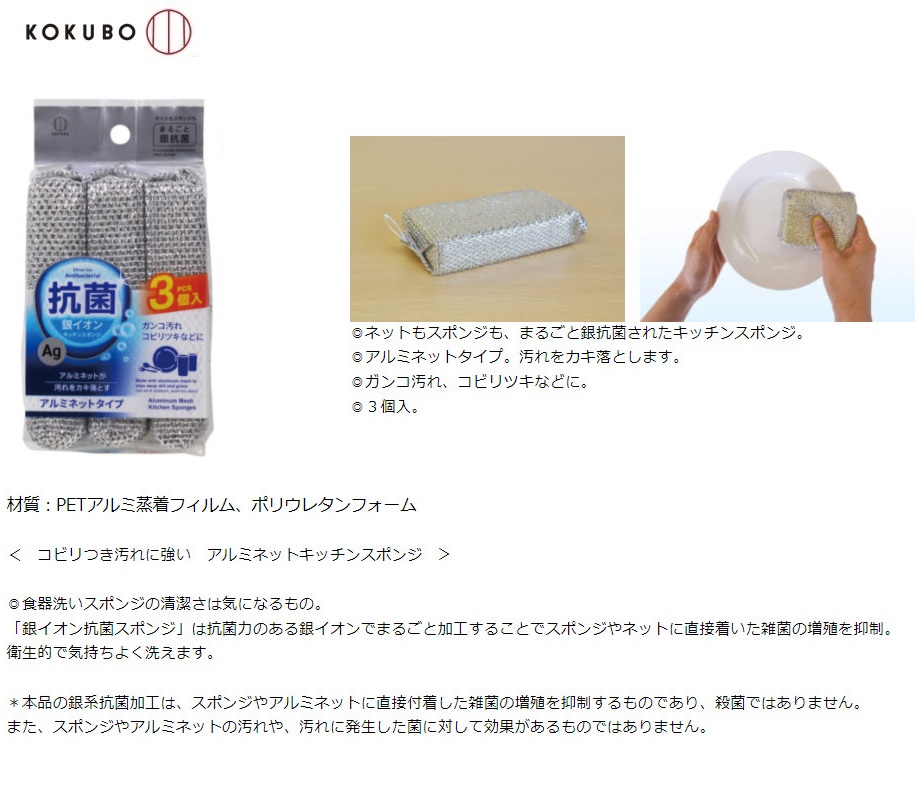 ✨Set 03 miếng bọt biển cọ rửa xoong nồi Kokubo màng nhôm ion bạc Ag+ - Hàng nội địa Nhật Bản