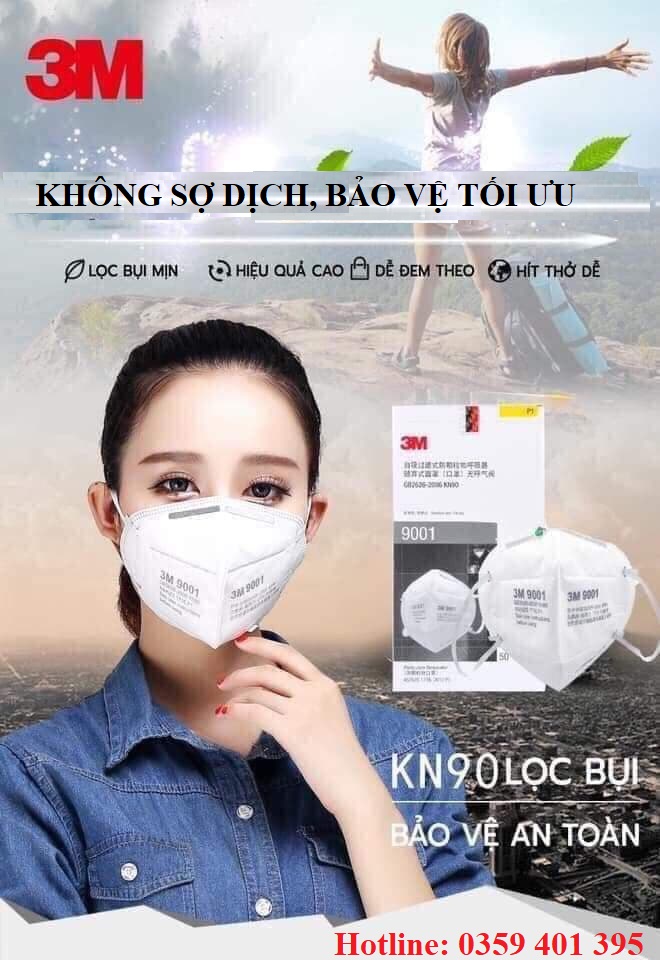 Khẩu trang 3M 9001 được thiết kế gọn nhẹ, dây đeo qua tai, đem lại sự thoải mái và thuận tiện cho người sử dụng, Ngày nay, với sự gia tăng ô nhiễm môi trường, cùng sự bùng nổ của các hoạt đông công nghiệp, các dịch bệì vấn đề đảm bảo sức khỏe, đặc biệt là sức khỏe đường hô hấp ngày càng được quan tâm đặc biệt. Các loại khẩu trang cần được trang bị hiện đại hơn. Khẩu trang 3M sẽ góp phần tăng cường bảo vệ đường hô hấp cho người sử dụng. Màng lọc tiên tiến với các sợi tích điện ngăn bụi, giúp lọc tối thiểu 90% các hạt bụi siêu nhỏ, đặc biệt là bụi 2.5PM có kích thước rất nhỏ: từ 1 đến 2.5 micromet, chỉ bằng 1/40 sợi tóc người Thanh kim loại trên mũi có thể điều chỉnh tạo độ khít của khẩu trang với gương mặt, tăng khả năng bảo vệ. Cấu tạo màng lọc tĩnh điện, có dây đeo bằng thun kèm nẹp thép ngay mũi để điều chỉnh khẩu trang ôm sát khuôn mặt, dễ dàng sử dụng Sử dụng phù hợp trong môi trường bụi mịn, nhiều sương mù, đặc biệt được khuyên dùng trong môi trường xây dựng, phun xịt thuốc trừ sâu, phun sơn hoặc trong quá trình hàn, mài, cắt kim loại, y tế… Gần như không gây mờ kính khi đeo Cấu trúc 3D khiến khẩu trang không chạm mồm, không dính son nên sạch lâu hơn Dây đeo chắc chắn, rất khó đứt Là dòng khẩu trang KN (không chống dầu) Không giới hạn thời gian sử dụng, đồng nghĩa với việc nếu mà khẩu trang không bị rách, hỏng thì vẫn có thể tiếp tục sử dụng. Thương hiệu 3M Xuất xứ thương hiệu: Mỹ Nước sản xuất: Trung Quốc
