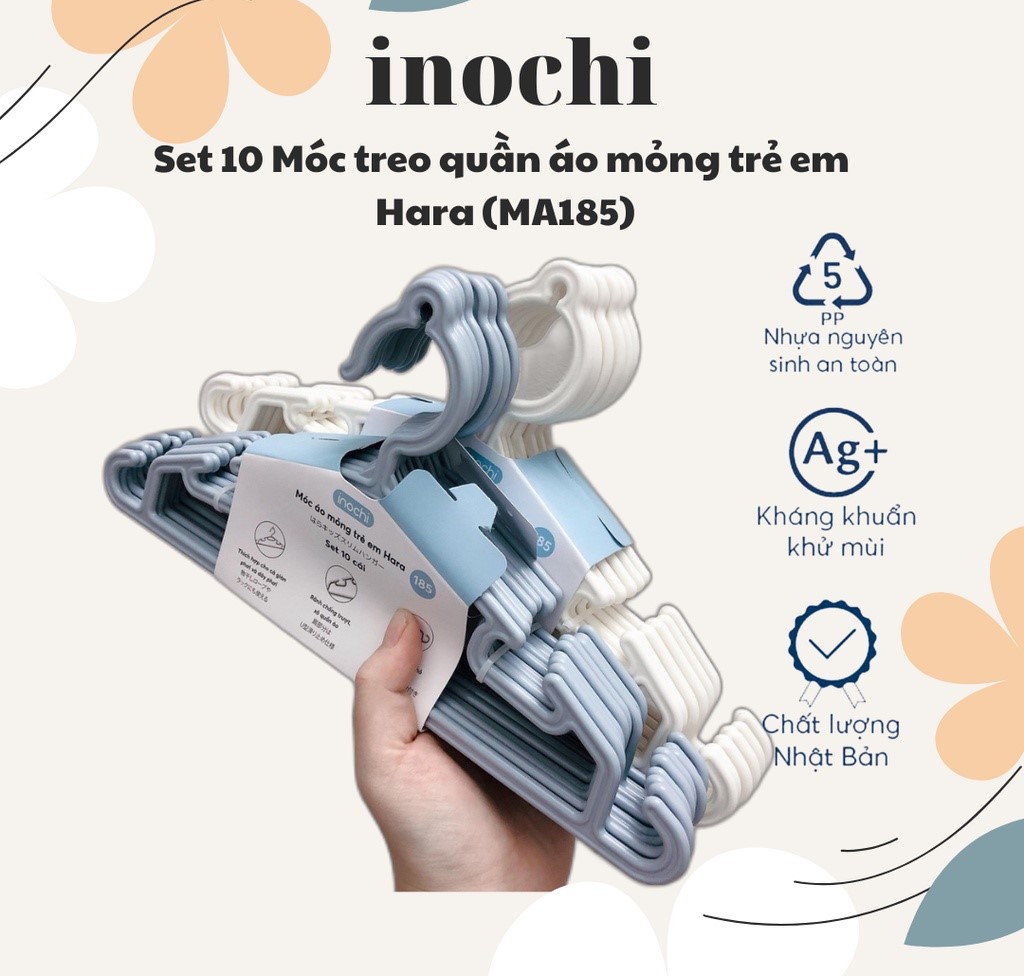 Set 10 chiếc móc áo mỏng trẻ em Hara 185 hàng cao cấp