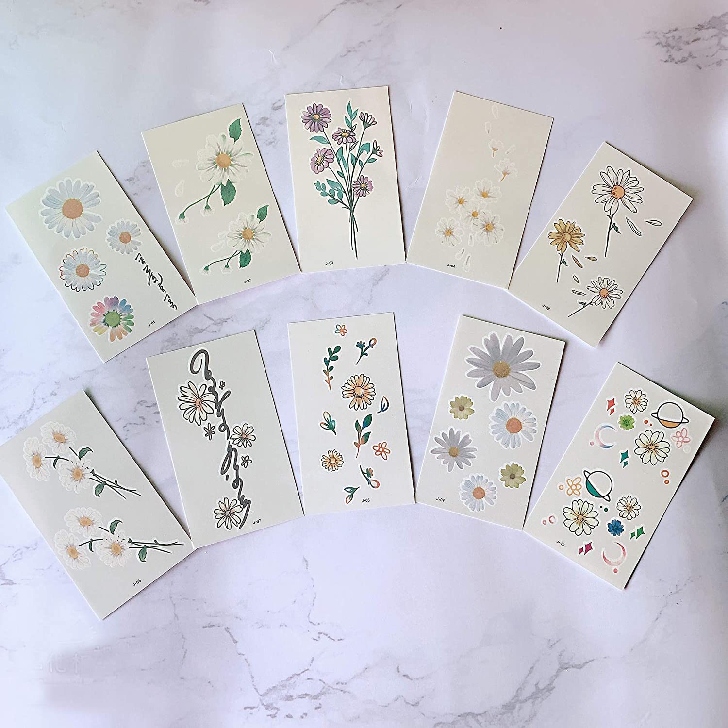 ✨Set 10 Tờ Hình Xăm Dán 8 Ngày Chống Nước Lâu Trôi Hoa Cúc Họa Mi, Mặt Trăng, Trái Đất Thời Trang Legaxi