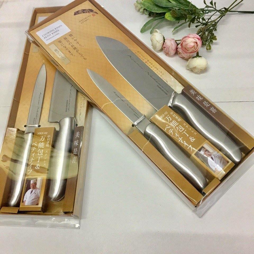 Set 2 chiếc dao làm bếp Nakamura ( 24cm & 16.4cm), làm từ thép chống gỉ sét, chống ăn mòn, không chứa thành phần độc hại - nội địa Nhật Bản  Chất liệu: thép không gỉ, bền bỉ với thời gian.Kíc...