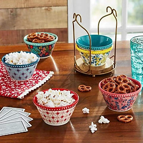 KT bát: miệng đk 11,5 cm, cao 6 cm Bộ bát rực rỡ của The Pioneer Woman với giá đựng Caddy mang theo nét duyên dáng đồng quê cho bất kỳ nhà bếp nào! Những chiếc bát ramekin đáng yêu này rất phù hợp để ăn cơm, để nướng và phục vụ các công thức nấu ăn yêu thích từ lò nướng đến bàn ăn của bạn cho bạn bè và gia đình của bạn. Khi bạn nướng từng phần món tráng miệng như mousse sô cô la và Crème Brule, những chiếc ramekin này chắc chắn sẽ gây ấn tượng với khách của bạn. Caddy cho phép những chiếc ramekin này dễ dàng được cất đi hoặc mang đi khắp nhà bếp. Được làm bằng đồ sứ bền chắc, những chiếc ramekin này có màu sắc rực rỡ và nhiều kiểu dáng đẹp mắt. Vừa linh hoạt vừa quyến rũ, bộ Pioneer Woman Fancy Flourish Ramekin với Caddy chắc chắn sẽ là một sự bổ sung tuyệt vời cho bộ sưu tập đồ bếp