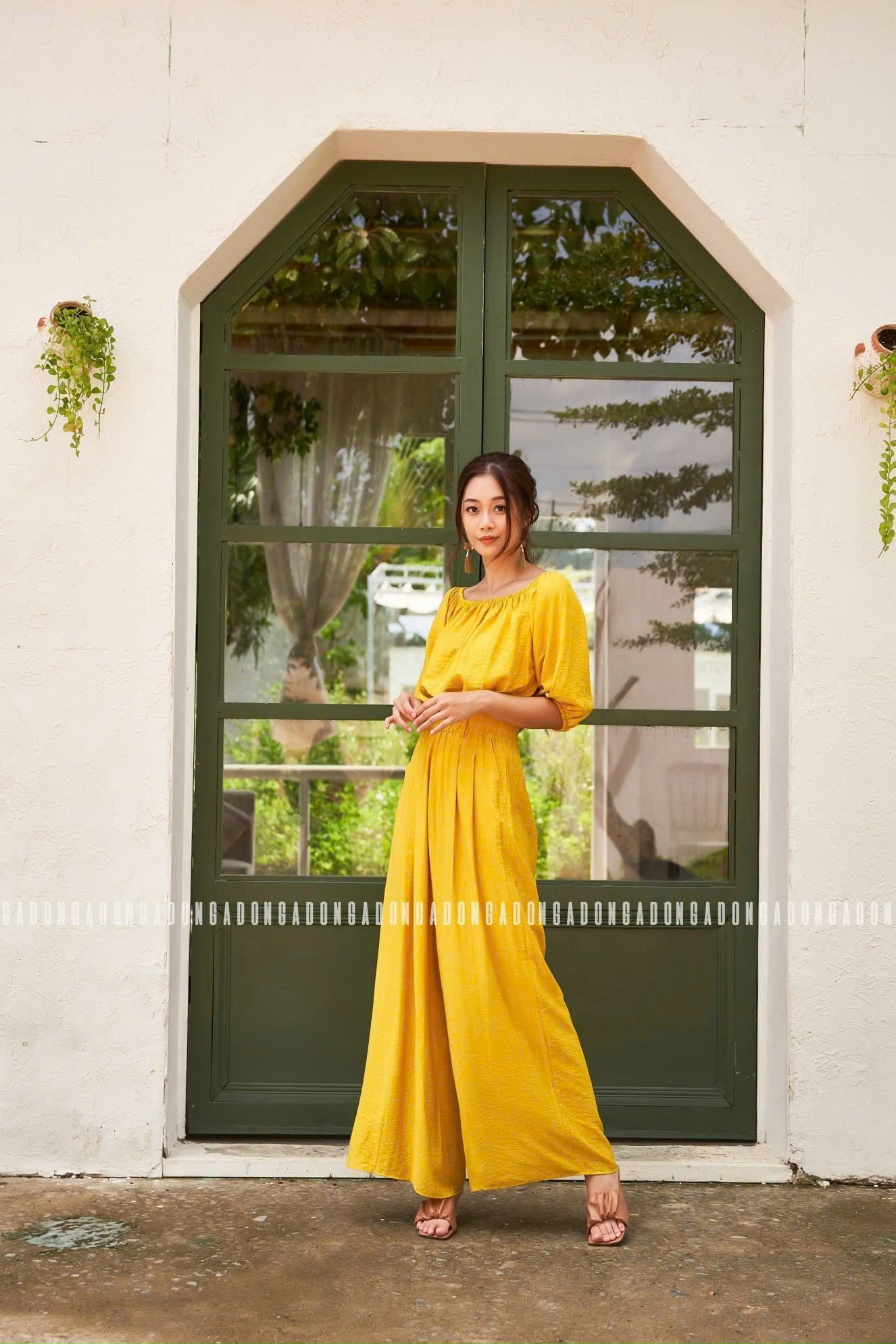 ღ THÔNG TIN SẢN PHẨM: Tên sản phẩm: Set áo quần vàng trễ vai Màu sắc: vàng Chất liệu: chéo dày Chi tiết sản phẩm: không lót, không túi. Thông