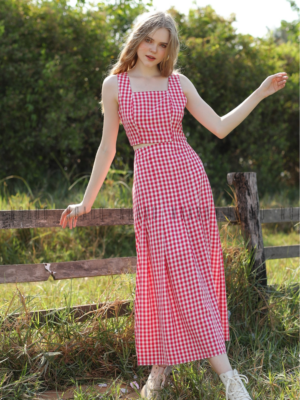💚 | Váy hai dây màu đỏ kẻ caro | Quần áo đẹp