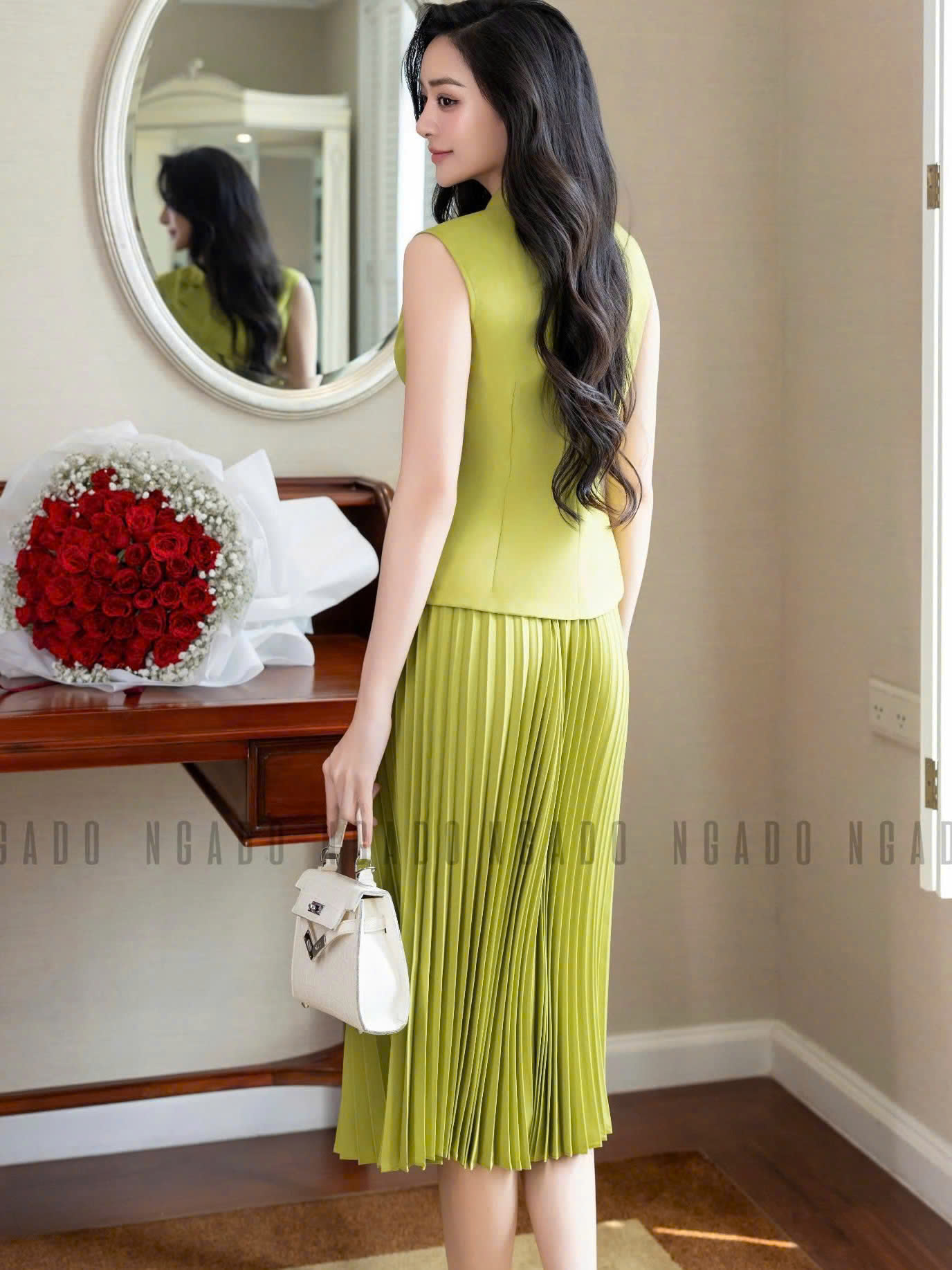✨Set áo váy xanh bơ xếp ly NGADO , set áo váy nữ , set công sở , dự tiệc
