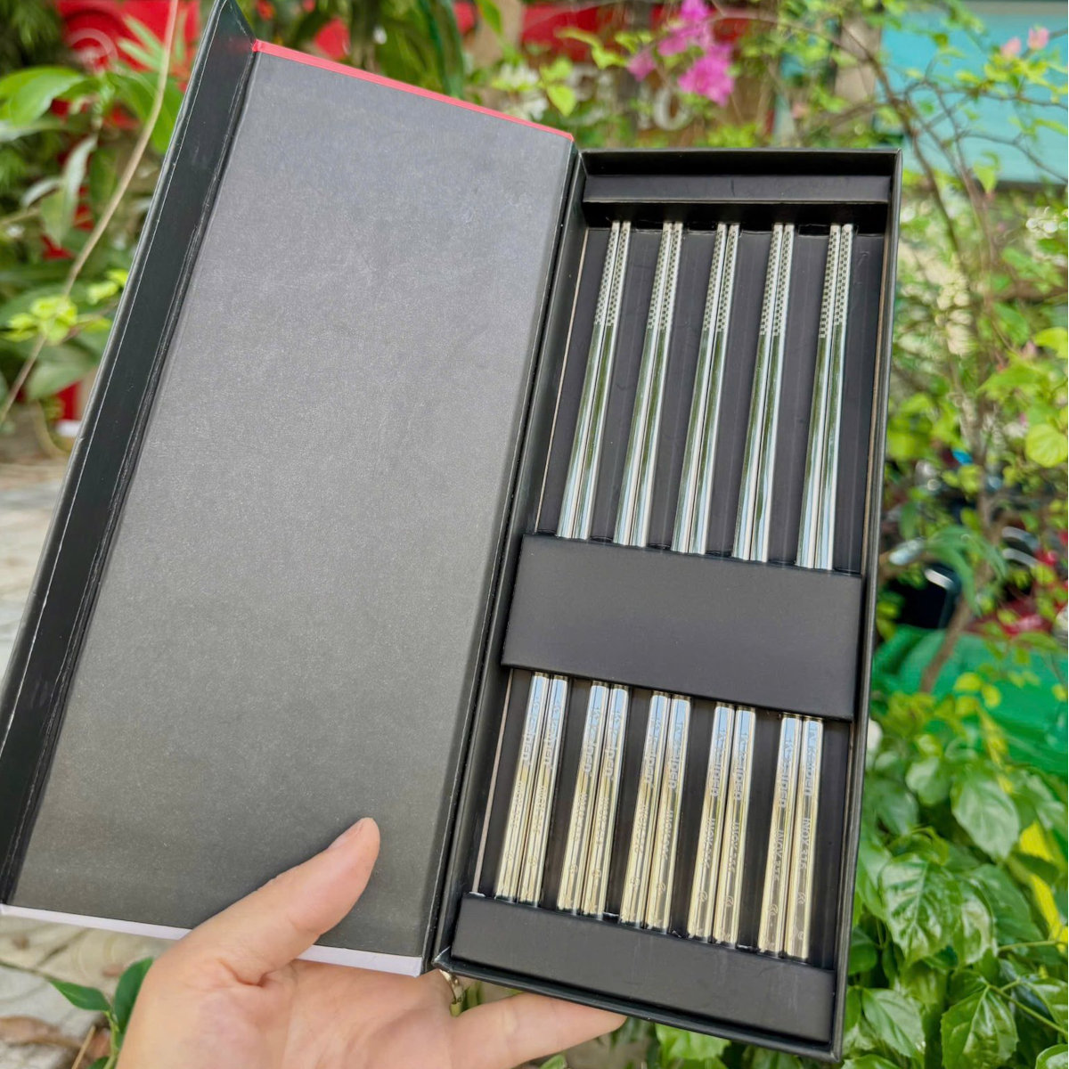0827788333 Hộp 5 đôi đũa inox phong cách Nhật cầm chắc tay