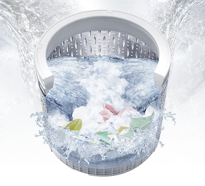 - Khối lượng giặt 11.5 kg thích hợp với gia đình trên 7 thành viên.  - Hệ thống ActiveFoam thẩm thấu và tẩy vết bẩn bằng bọt đậm đặc siêu mịn. - Công nghệ xoáy nước Water Bazooka giặt sạch