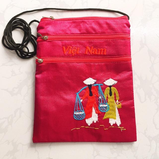 Túi đựng điện thoại thêu 3 cô gái Việt Nam
